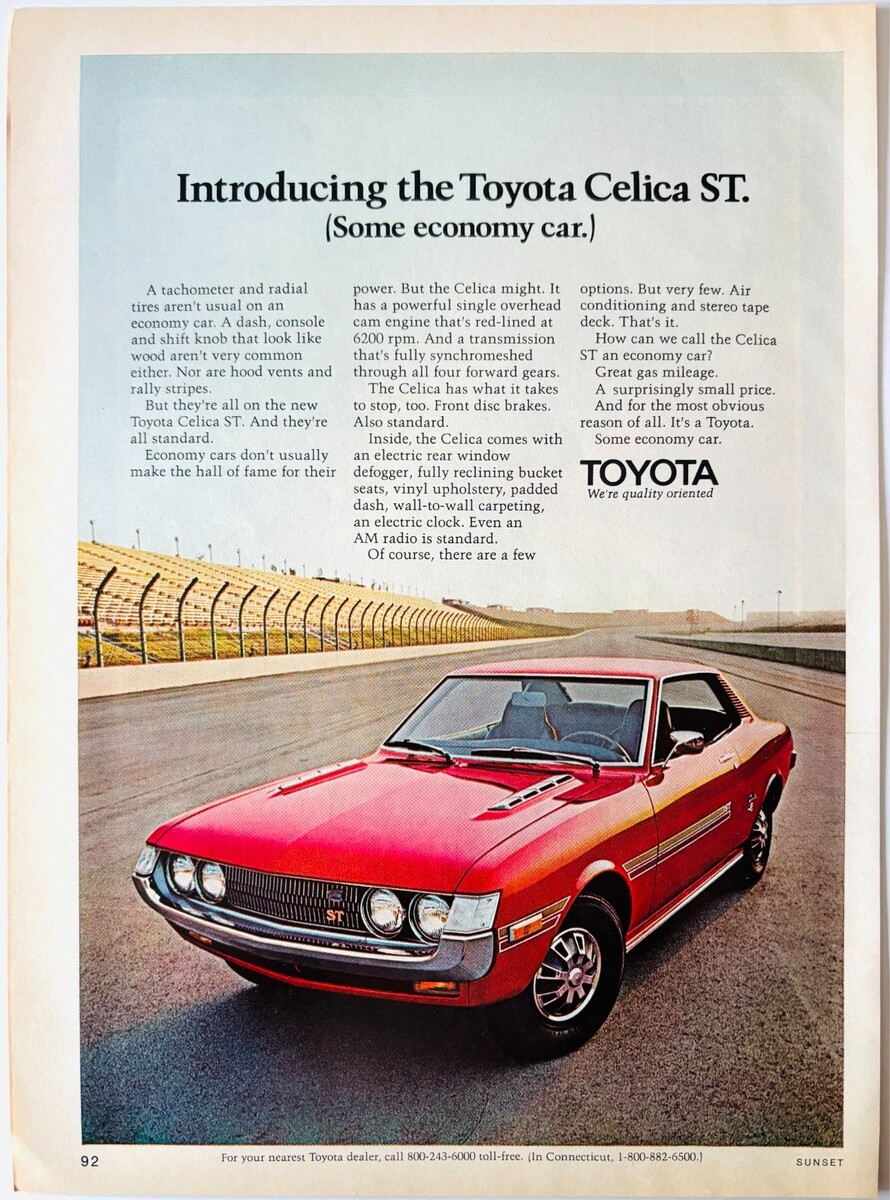 1972 Toyota Selica ST Advertisement Vintage Automobile Economy Sedan DWW10E