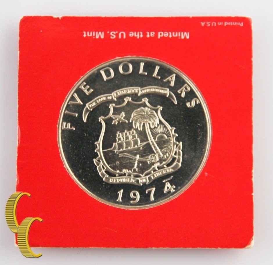 - 1974 Liberia Dollar Coin (Proof, Pf) 0.900 Silver Bull Elephant- show origina...