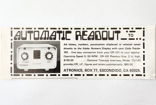 Primary image for 1975 Atronics Automatic Readout Code Reader Advertisement Electronics C82QST