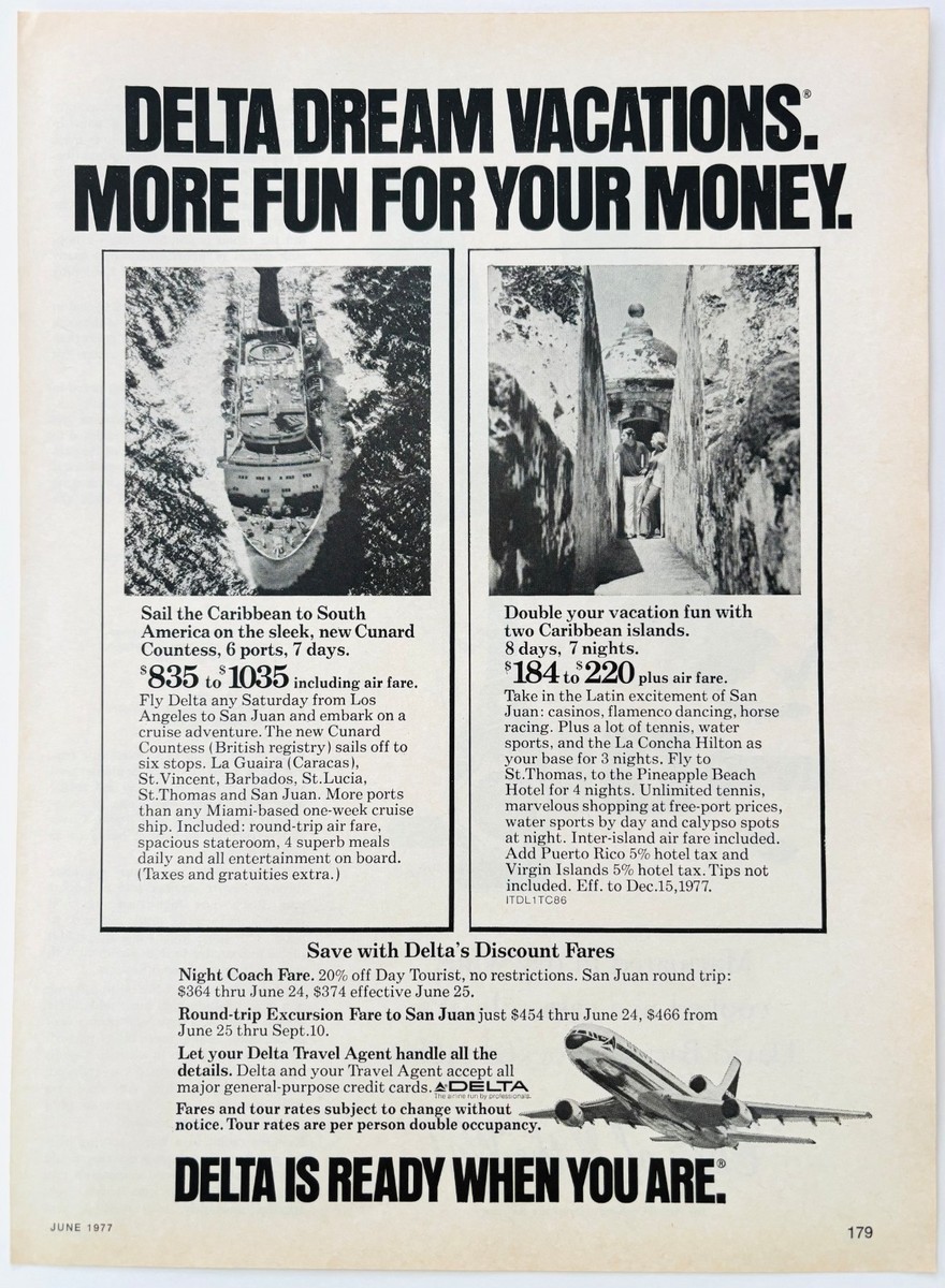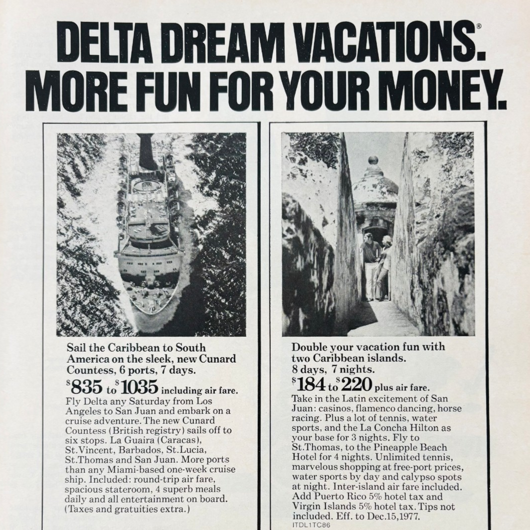 Primary image for 1977 Delta Airlines Advertisement Vintage Caribbean Travel Aviation DWW13C