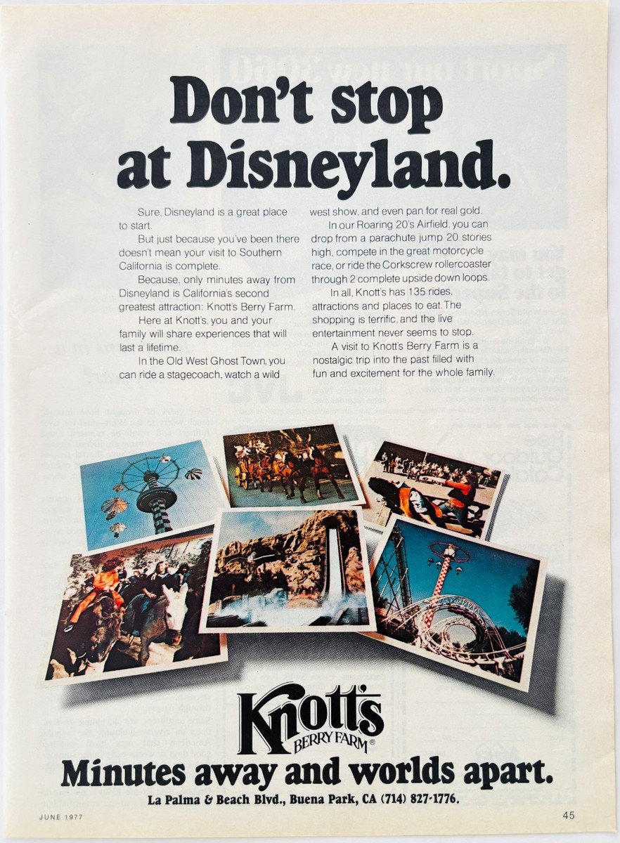1977 Knott's Berry Farm Theme Park Advertisement California Vintage DWW13B