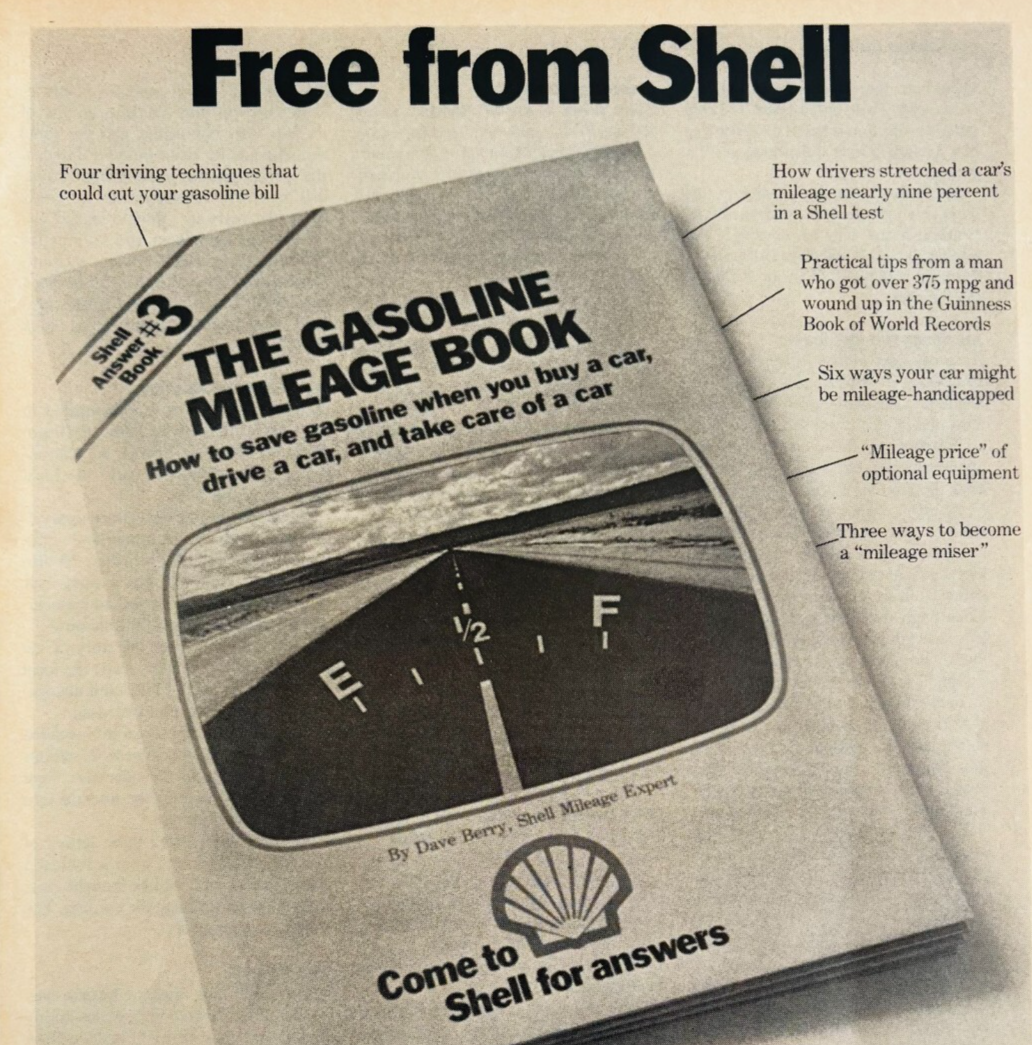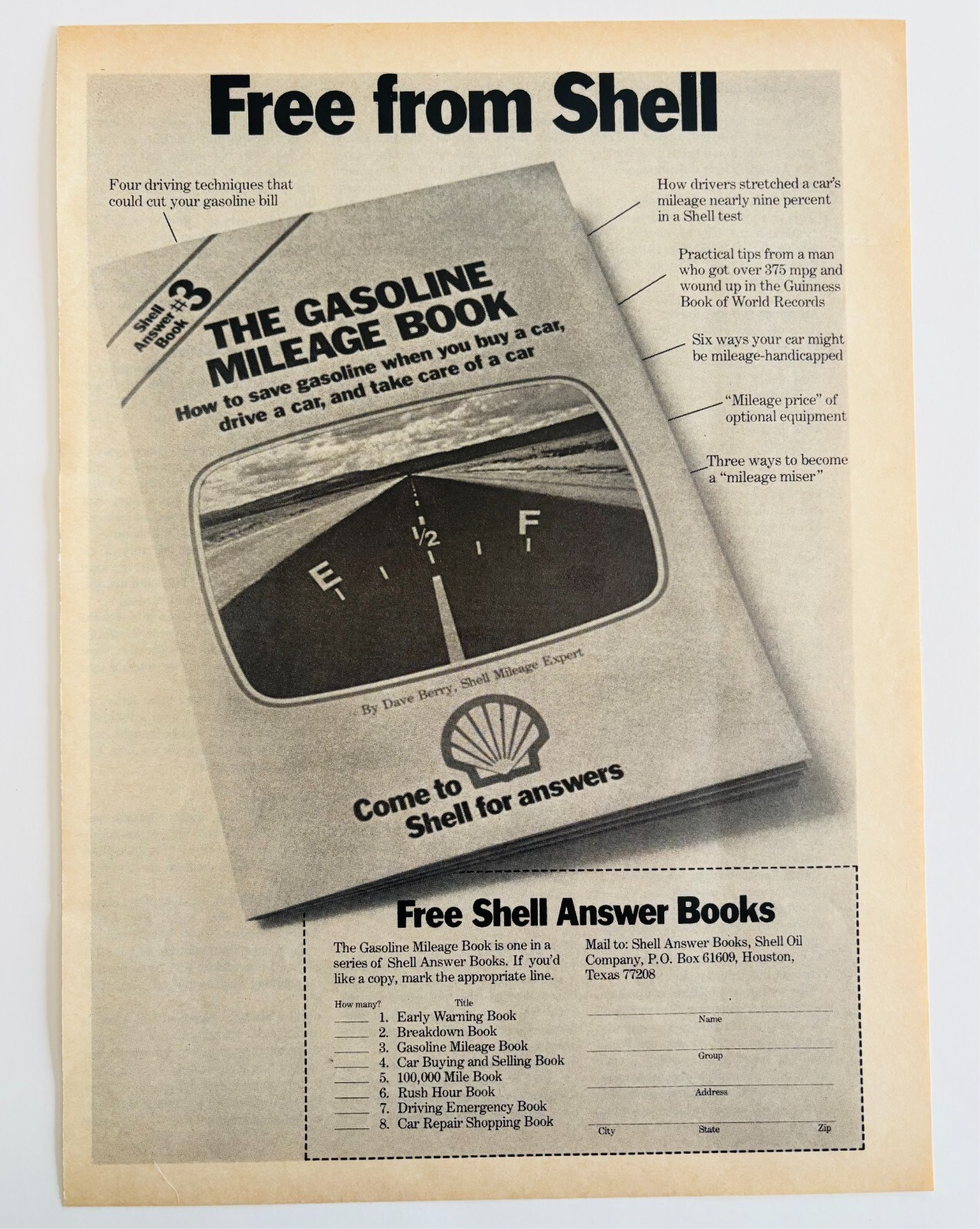 1977 Shell Oil & Gas Book Advertisement Vintage Gasoline Mileage DWF16