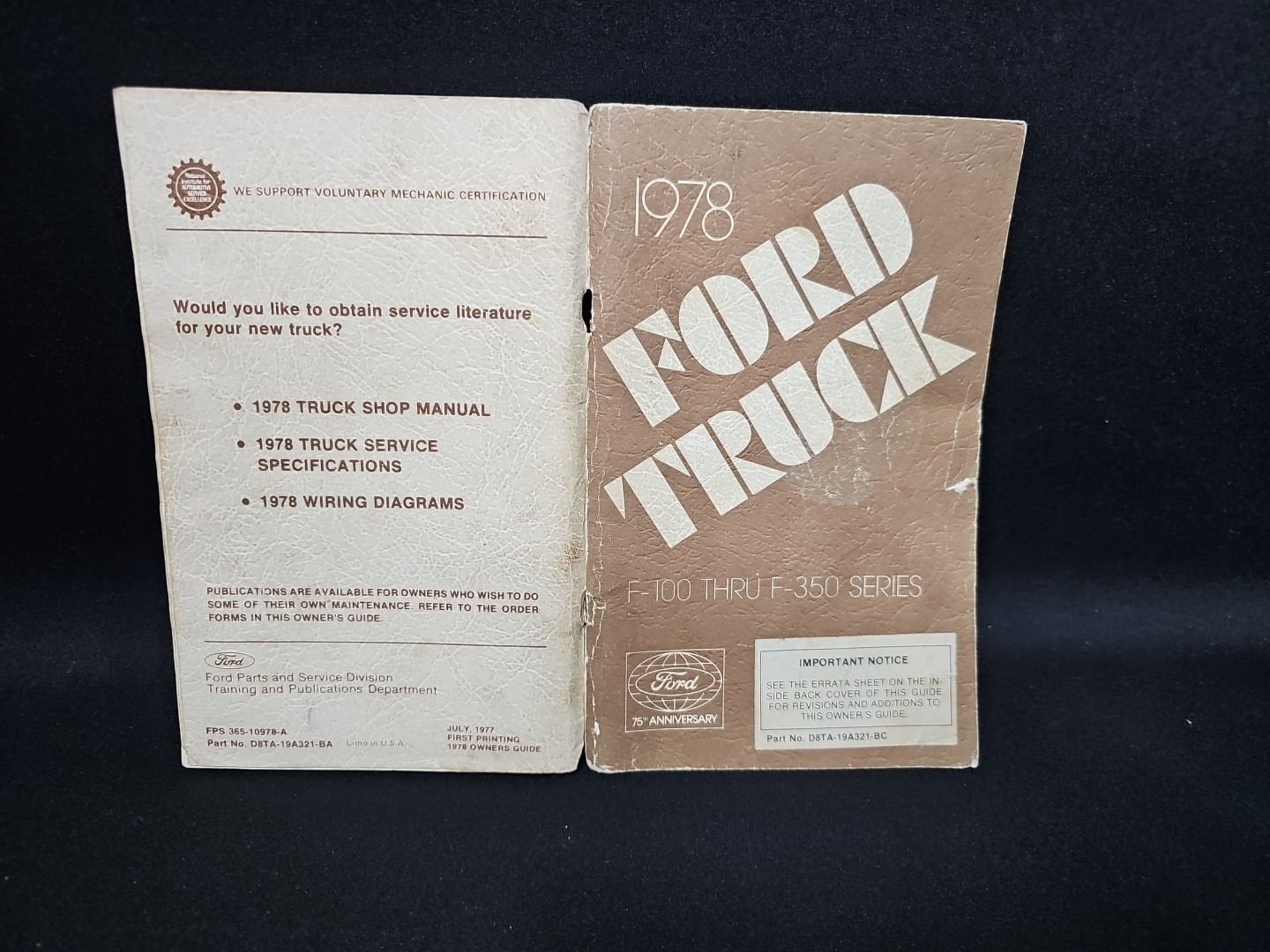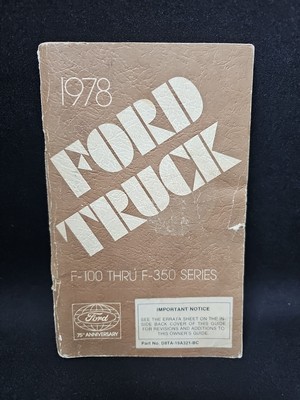 UP FOR SALE: ORIGINAL OWNERS MANUAL--1978 Ford------F100--F150--F250--F350 AS IS AS SHOWN----Please take a look at the pictures for the best description. A photo is as good as a thousand words and is the best description of cosmetic conditions. Use your ZOOM TOOL to best see this item! Please look closely at all the photos for condition--Thank you *Vintage and secondhand items may have flaws. Please review item(s), description, and picture(s). I do my best to research and describe the items accurately, but I am not an expert on all of the items I sell. Unless specified in the listing, all items are sold AS-IS AS-SEEN in photos* All of My Items Come from a Smoke Free Home and have been cleaned per's standards I do ship every Monday - Friday I do my best to ensure that my photos are as true to color as possible. However, due to inconsistencies of various monitors, lighting sources, digital photography, and product color may vary slightly Feel free to visit My Store and Browse Through My Other Listings as I am happy to combine shipping for you. Please contact me with any issues prior to leaving negative/neutral feedback or low detail ratings, as I will always do my best to solve any problems that may come up! If you have any further questions, please feel free to message me. Any props that are used in the taking of the photos are not included. Only the item/items in the title of the listings are being sold