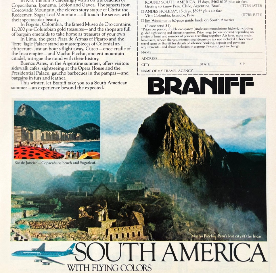 Primary image for 1978 Braniff Airlines Advertisement Vintage Aviation South America DWW12E