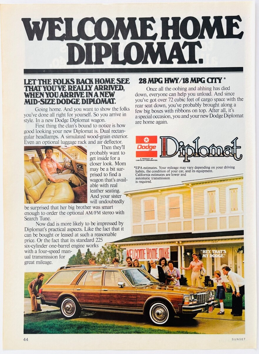 1978 Dodge Diplomat Advertisement Vintage Automobilia Chrysler Corp DWW12D