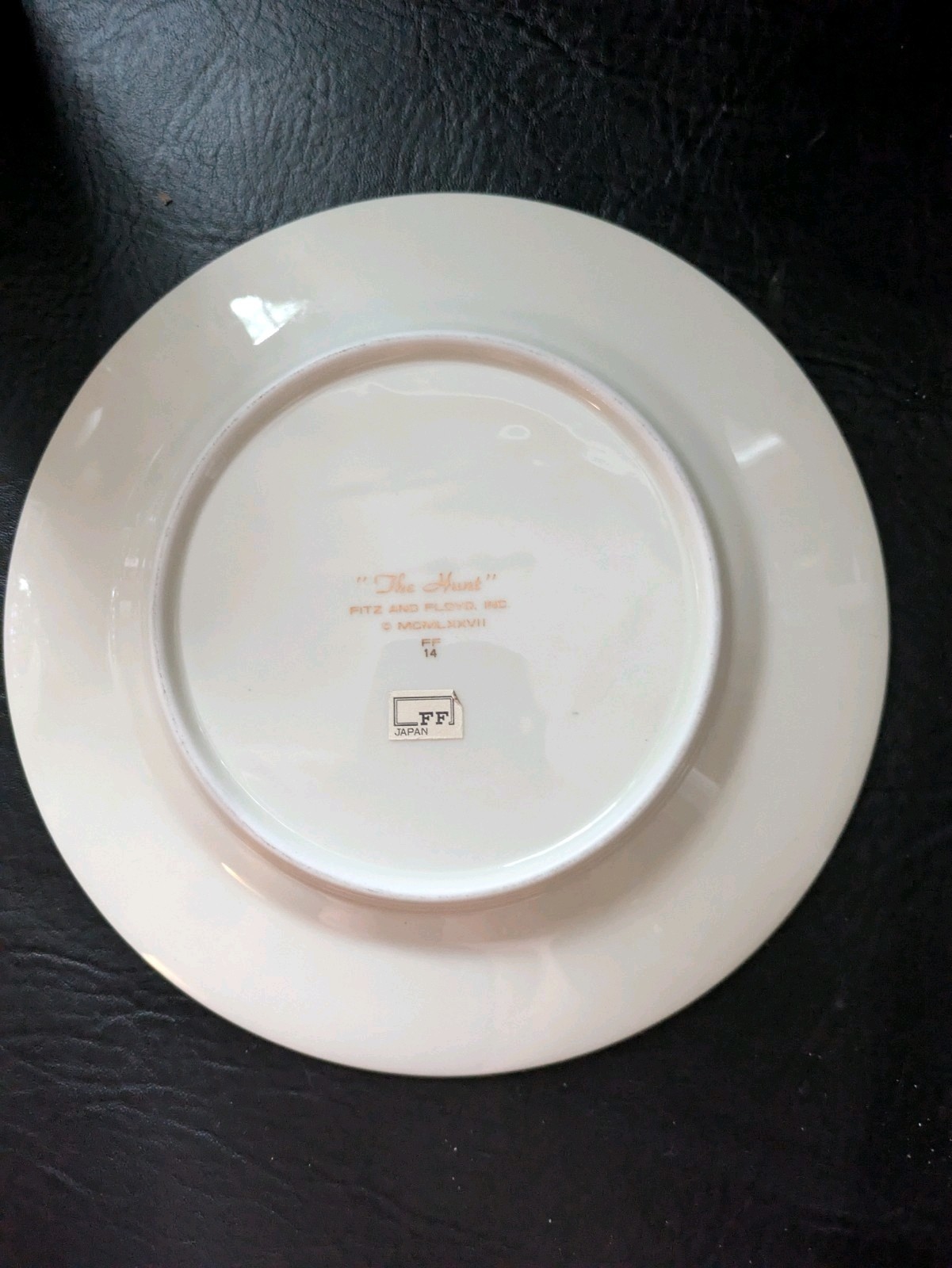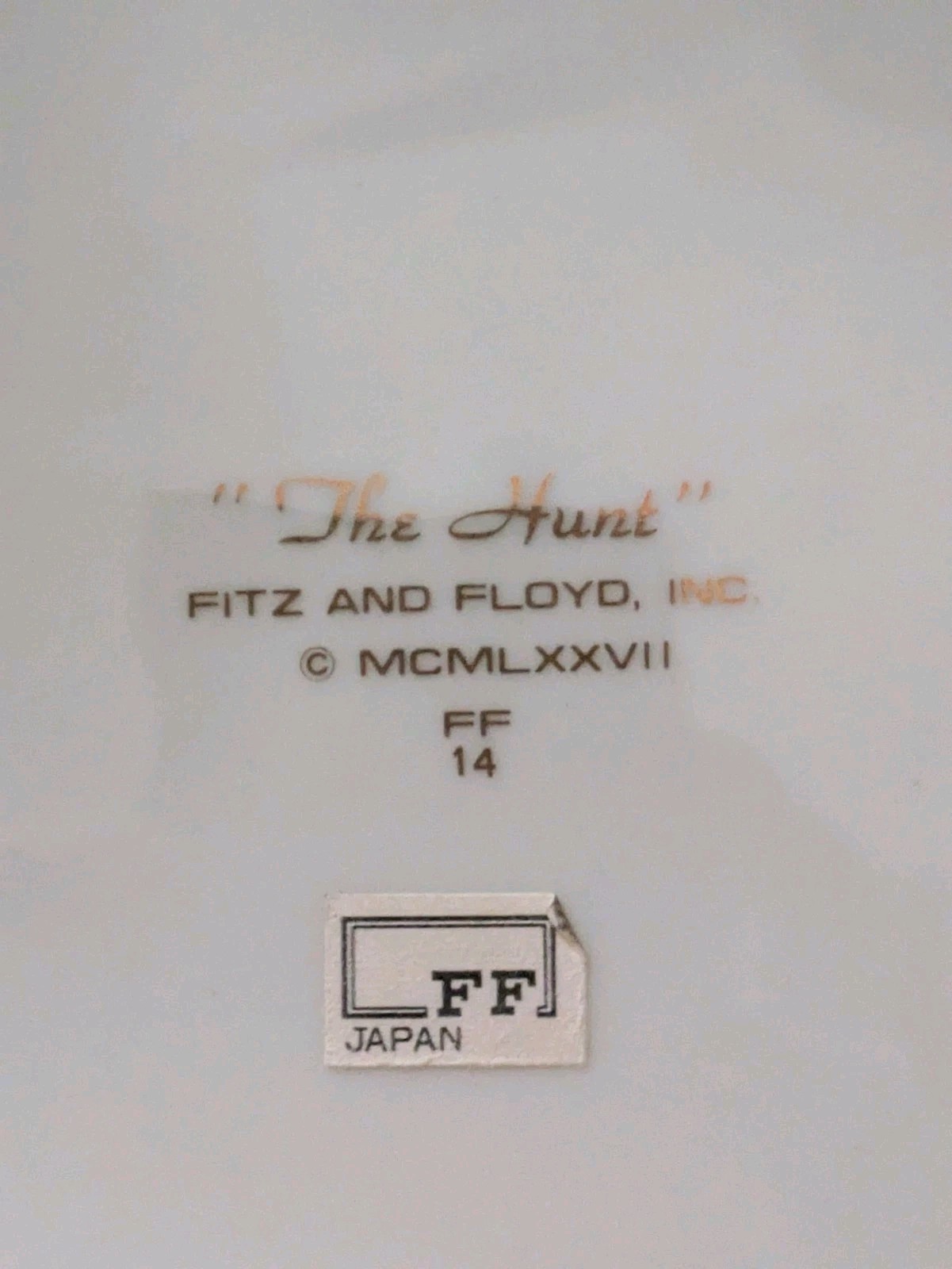 El producto es un plato de ensalada Fitz Floyd "The Hunt" de 1978 con un encantador tema de caza de zorros. Hecho de porcelana con un acabado brillante, la placa muestra un esquema de color de crema, marron y dorado. Con un diametro de 7 1/2 pulgadas, esta pieza decorativa se fabrico en Japon, agregando un toque de sofisticacion a cualquier mesa de comedor o coleccion de ceramica y vidrio. Perfecto para servir ensaladas o postres con un toque de elegancia vintage. Tengo mas platos de ensalada, si necesita un diseño específico.