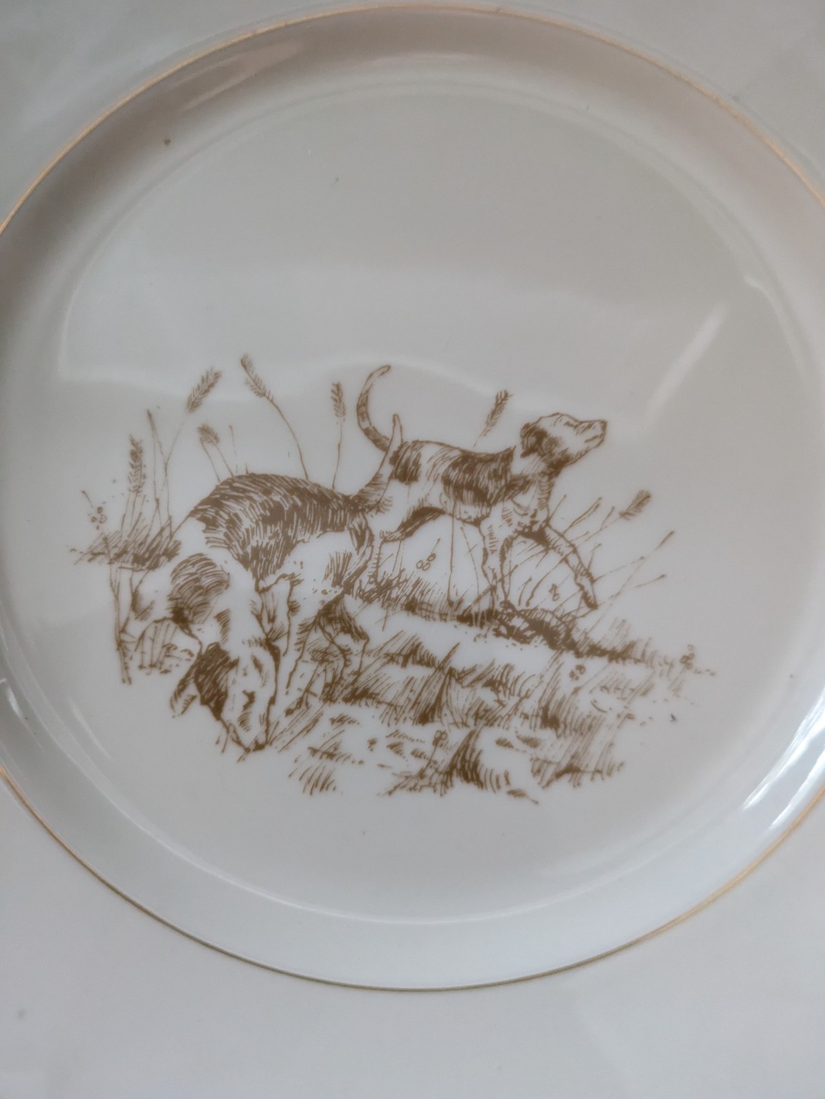 1978 Fitz & Floyd La Caza 2 Perros 19.1cm Ensaladera Blanco Oro Ff 14 Mint