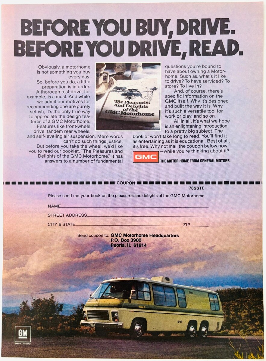 1978 GMC Motorhomes Advertisement Vintage Automobilia Recreational RV DWW12D