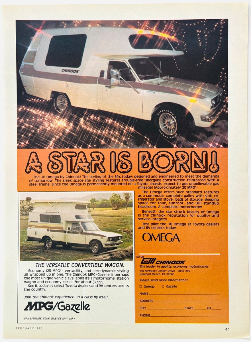 1978 Toyota Chinook Omega Camper Advertisement Vintage Automobilia DWW12D