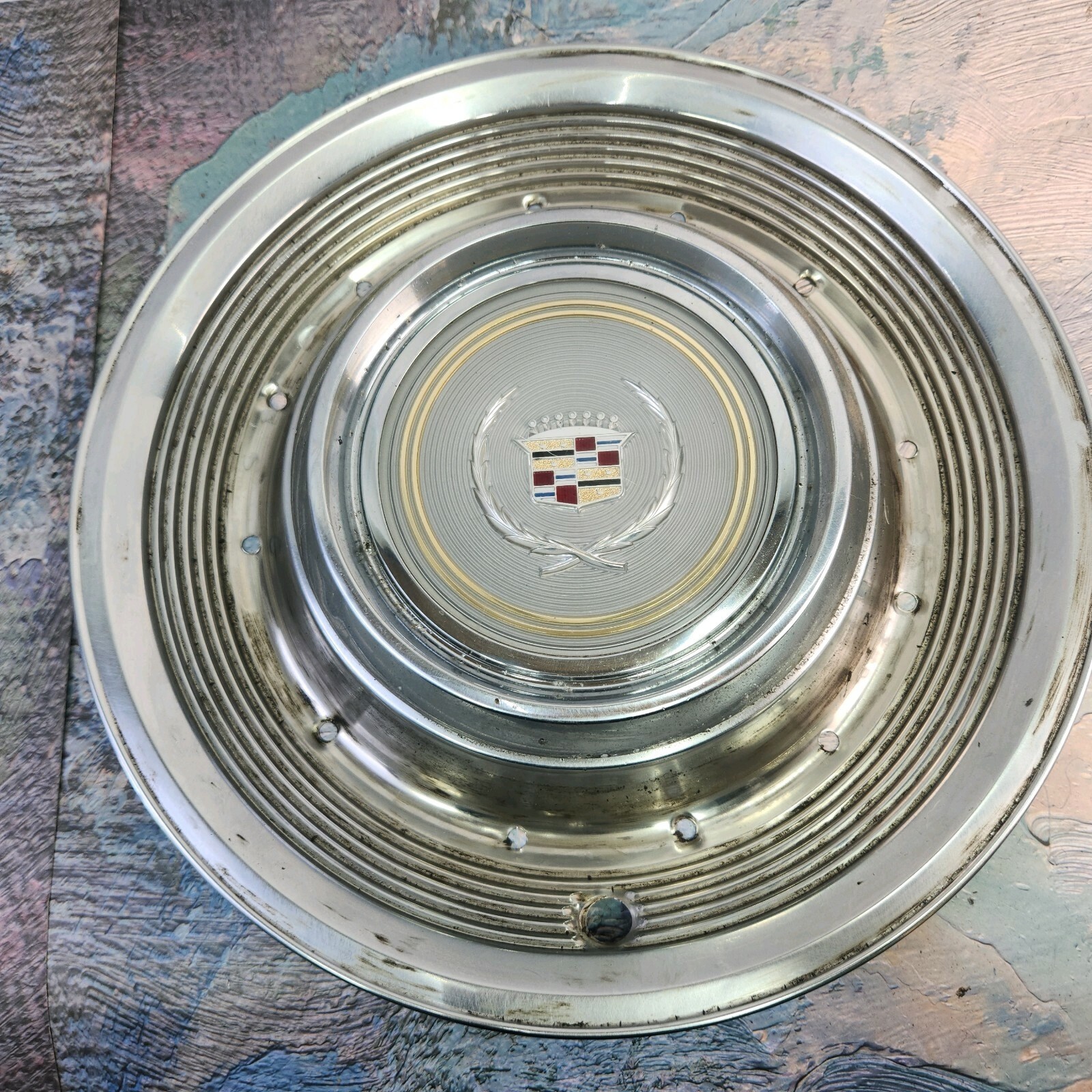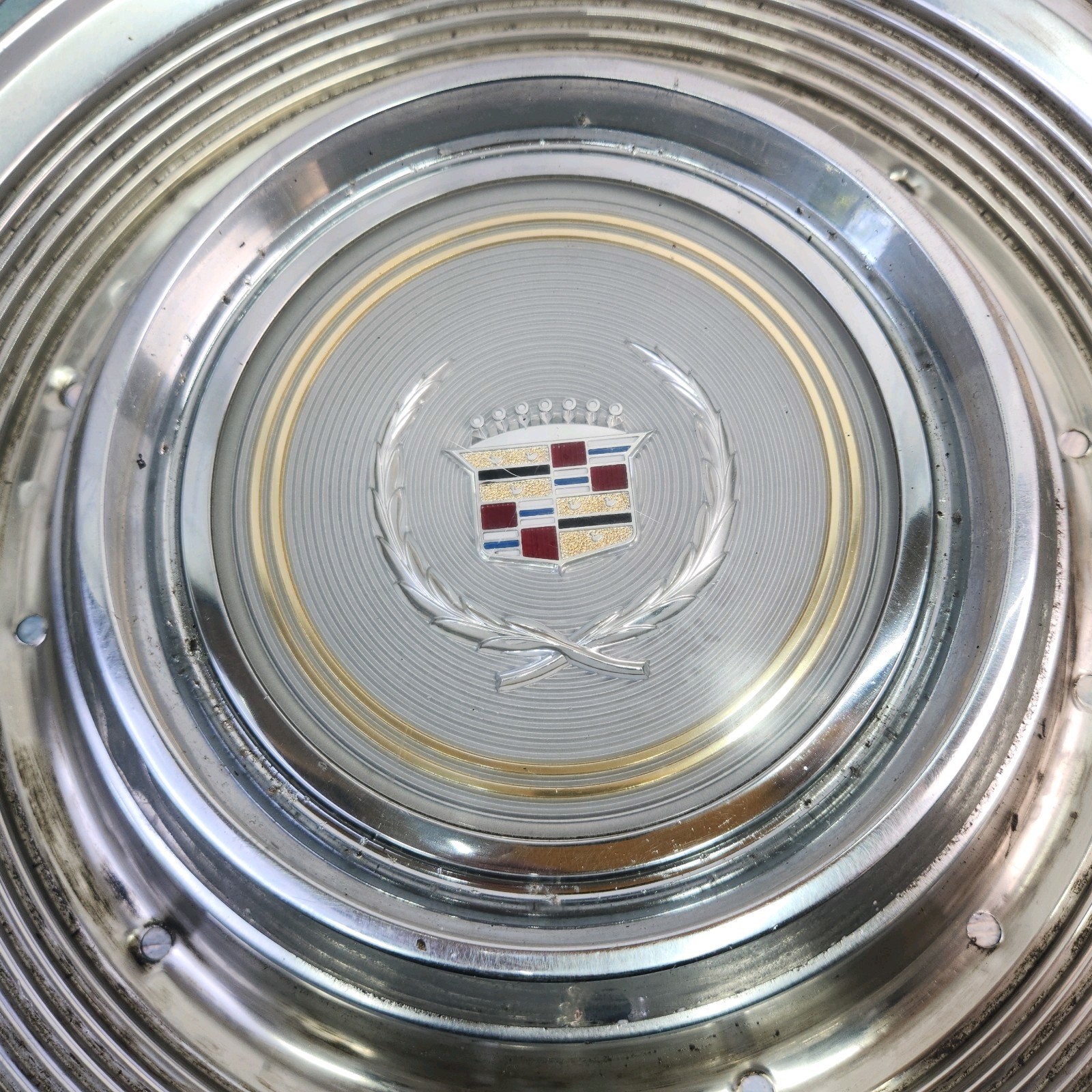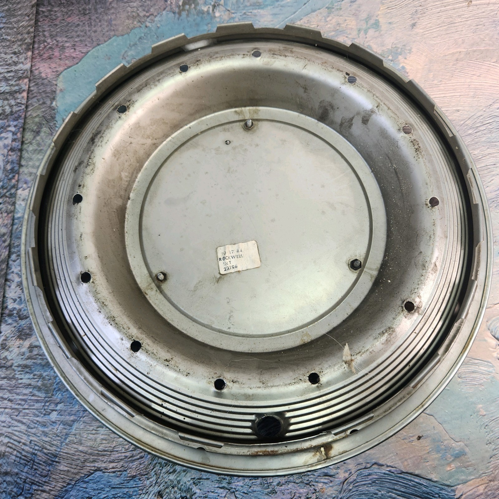 - 1979-1984 Cadillac Fleetwood 15" Wheel Stainless Hub Cap w White Emblem OEM Used