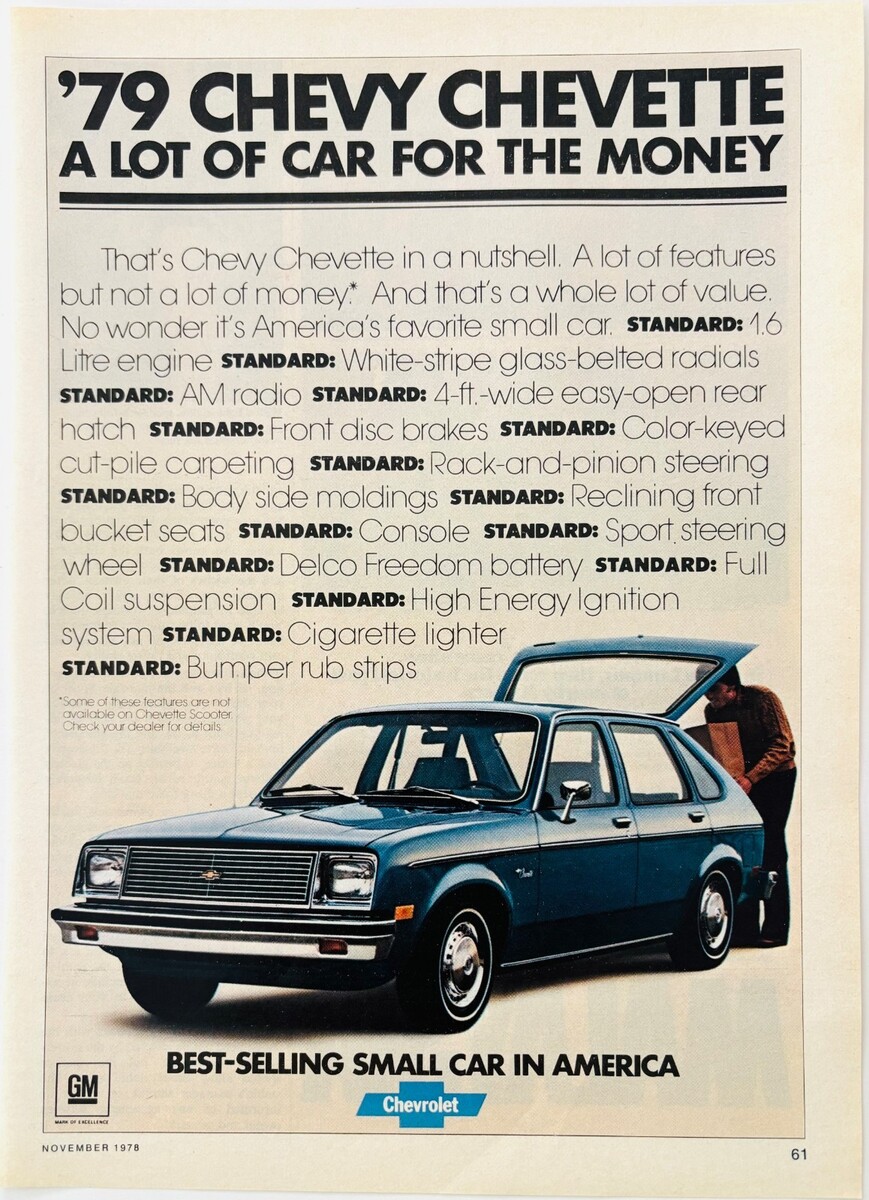 1979 Chevy Chevette Advertisement Classic Vintage Automobilia Chevrolet DWW12C