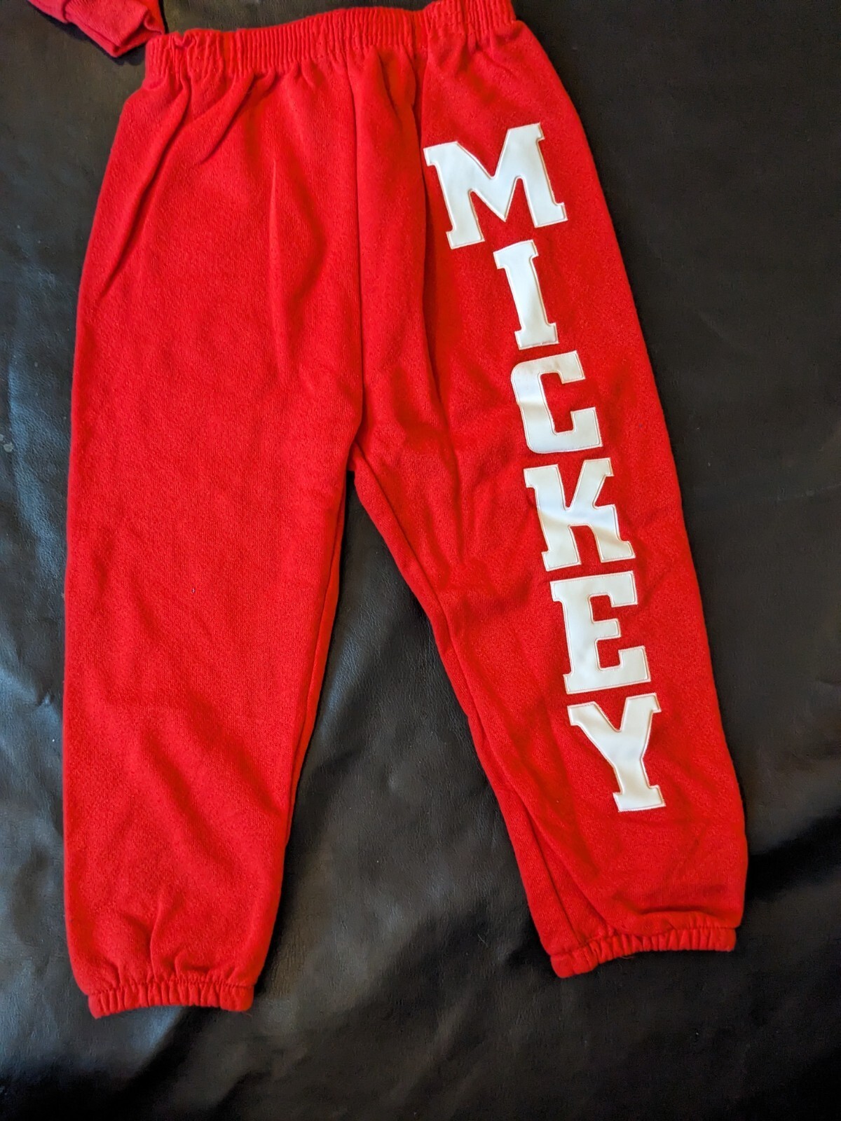 - 1980 Vintage Mickey Mouse Sweat Suit Pants Shirt Red Disney Pilgrim Youth USA