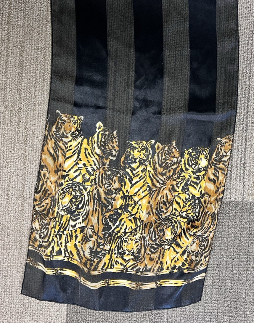 Primary image for 1980s Black Striped w Brown Tiger Design Scarf 57 long x 13 Wide Animal Print
