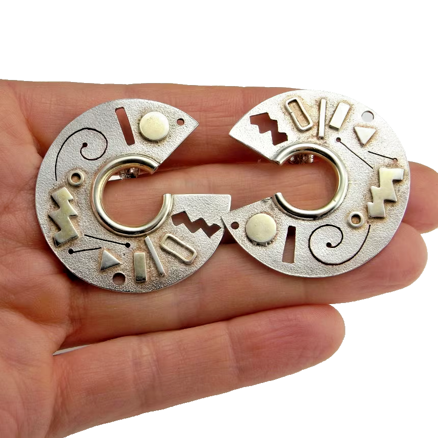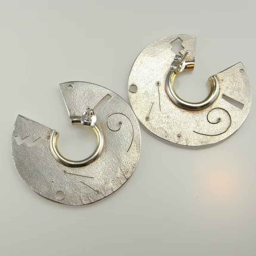 - 1980s Handmade OOAK Silver gEOMETRIC CIRCLE Modernist Earrings OFFeR!