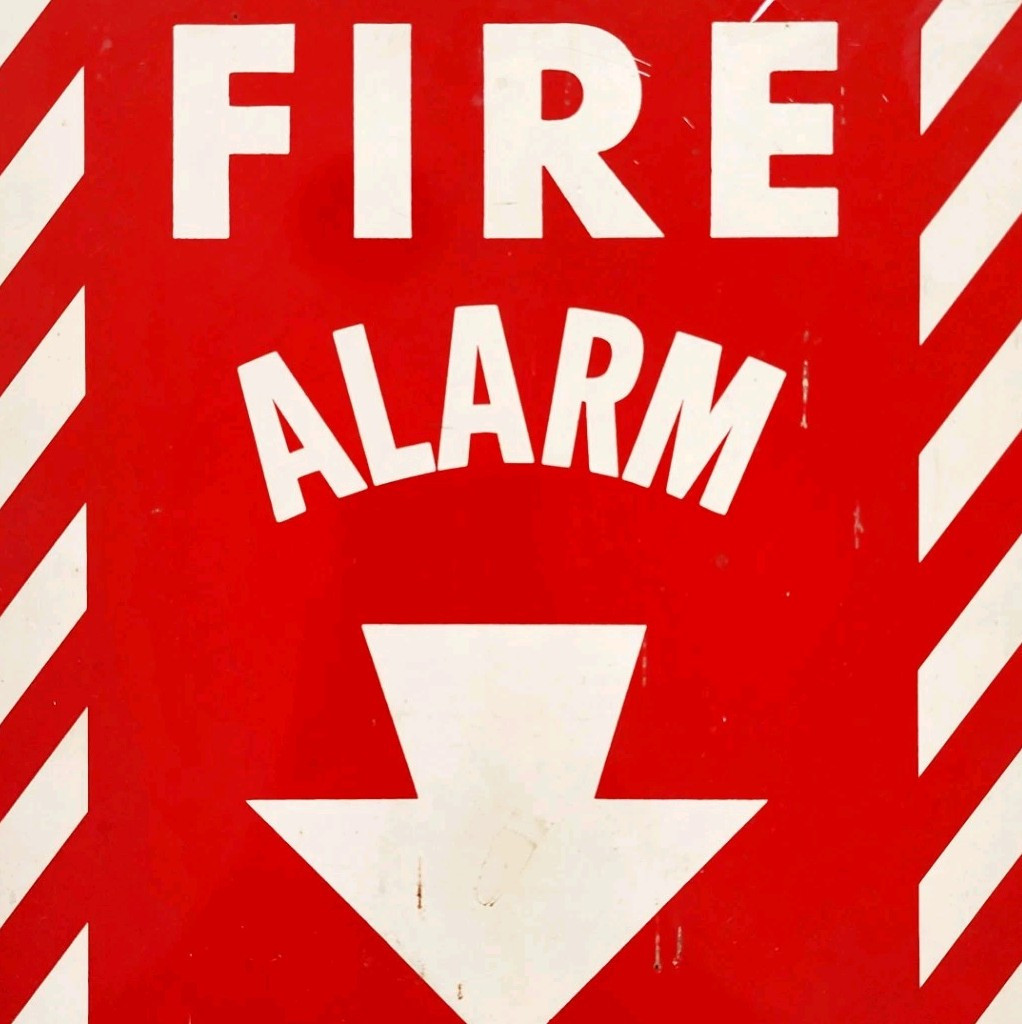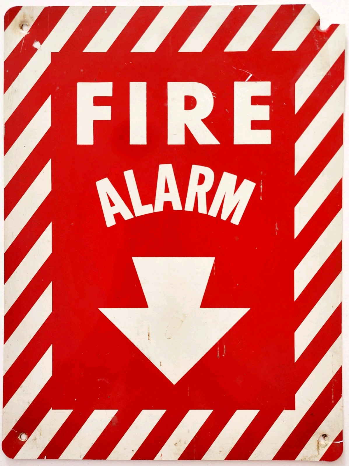 1980s Vintage Fire Alarm Sign Candy Stripe Red White Collectible 12" x 9" DWRR3