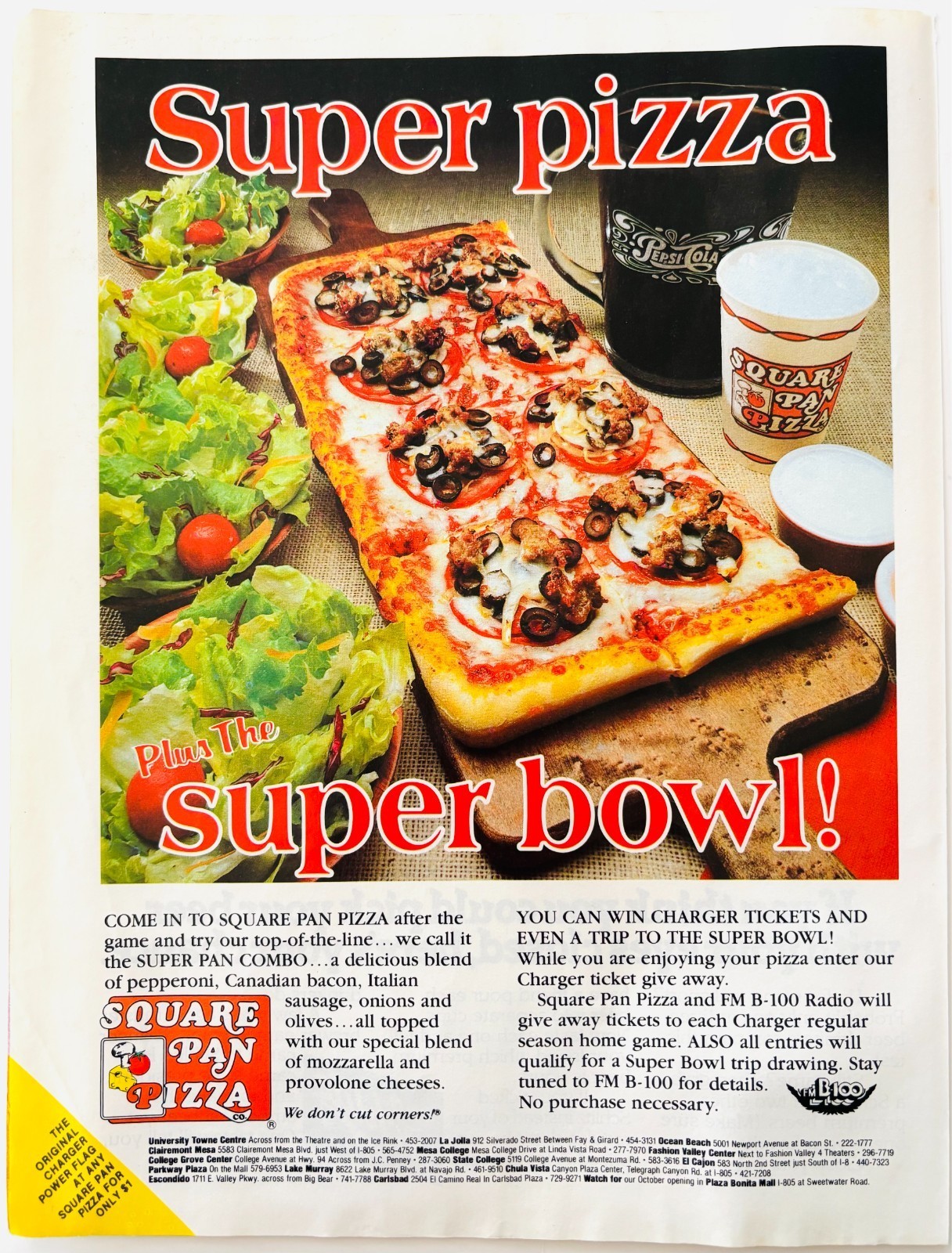 1981 Square Pan Pizza Restaurant Advertisement Vintage San Diego FM B-100 DWV11A