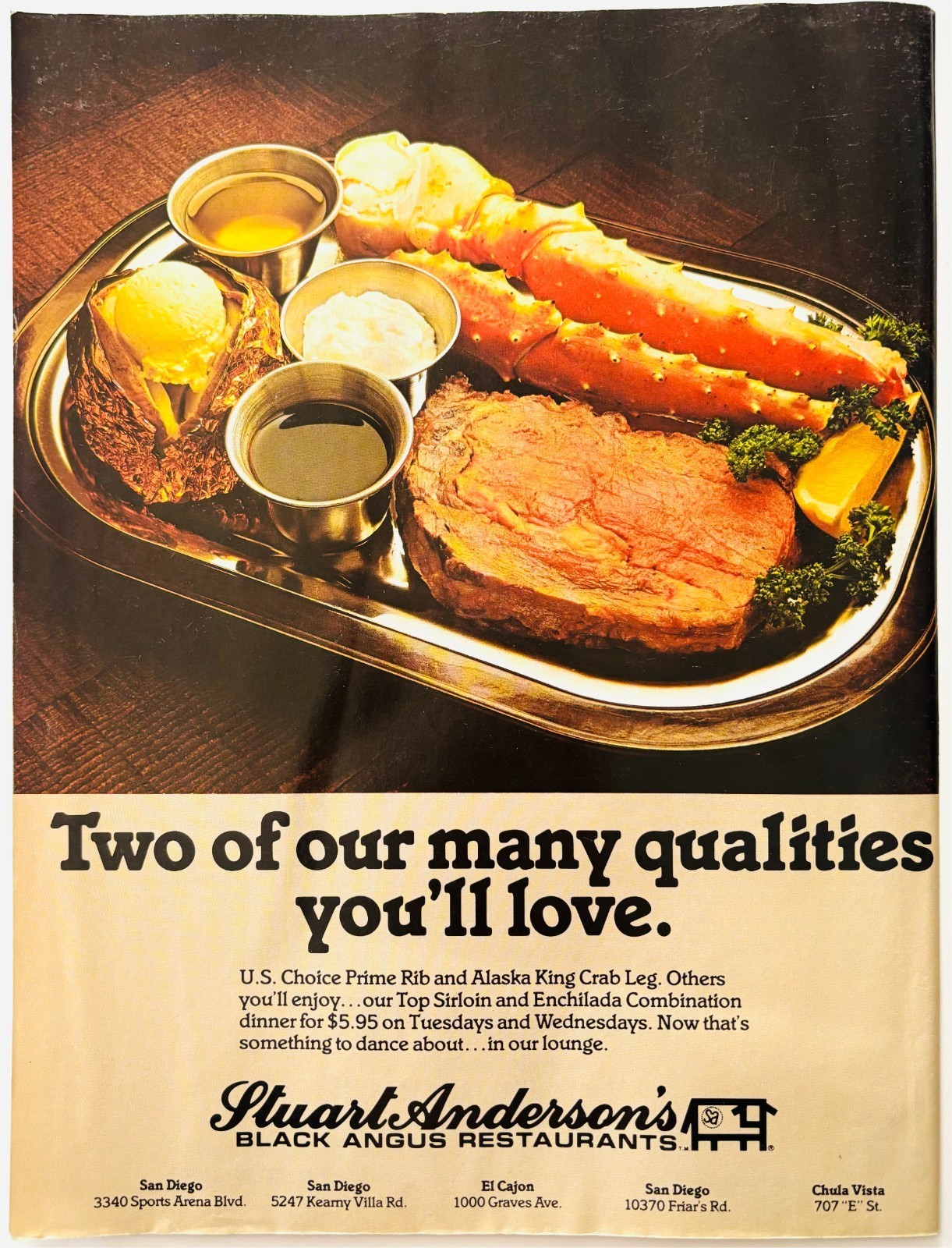 1981 Stuart Anderson's Black Angus Restaurant Advertisement San Diego DWV11A