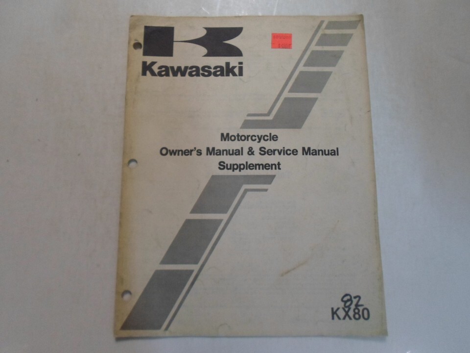 Primary image for 1982 Kawasaki KX80 Motorcycle Owners Manual & Service Manual Supplement STAINED