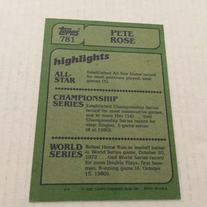 1982 Topps Philadelphia Phillies Pete Rose In Action Card #781 Will Ship in Plastic Top Loader Card protector. 1 business day of handling and 3-5 business days of shipping. No tracking included with envelope shipments but you will get within a week of purchase. Thank you for your Interest in this Item!