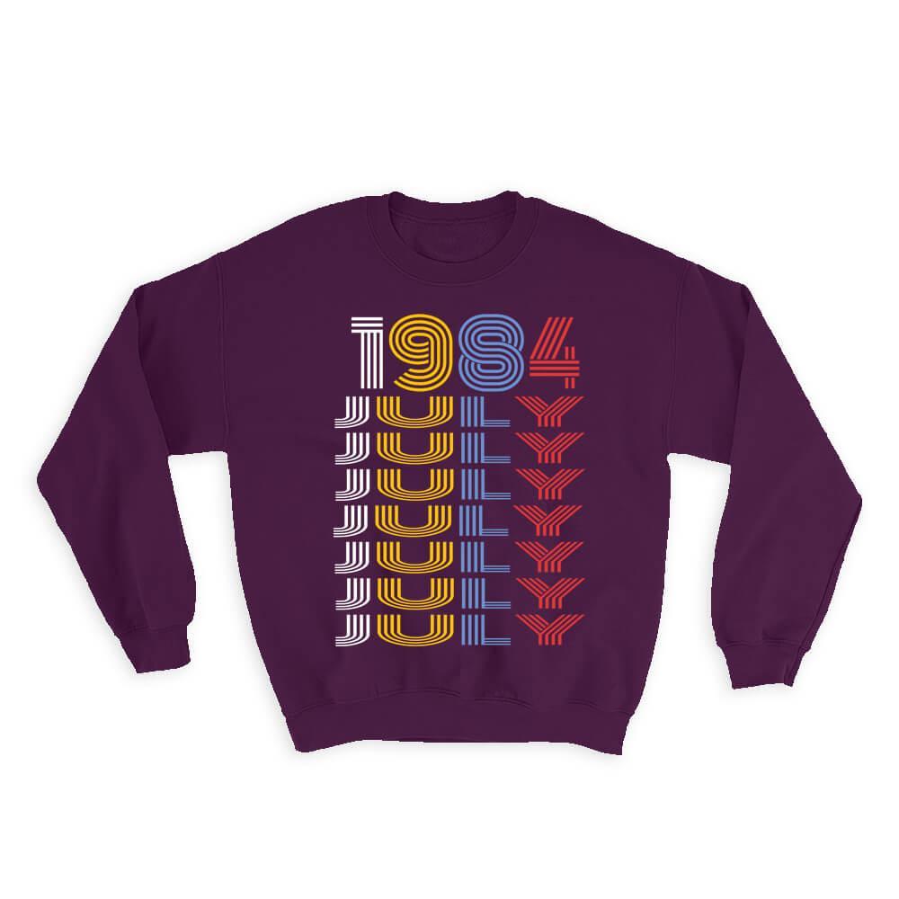 1984 July Colorful Retro Birthday : Gift Sweatshirt Age Month Year Born