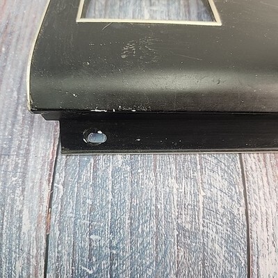 Exact item is shown. Vintage used item. No part numer on this item. Screw on black painted aluminum trim piece. Item dimensions 8.5 x 6 x 2 inches. Made in USA. Please review our business policies in our store for information regarding returns, shipping and warranties.