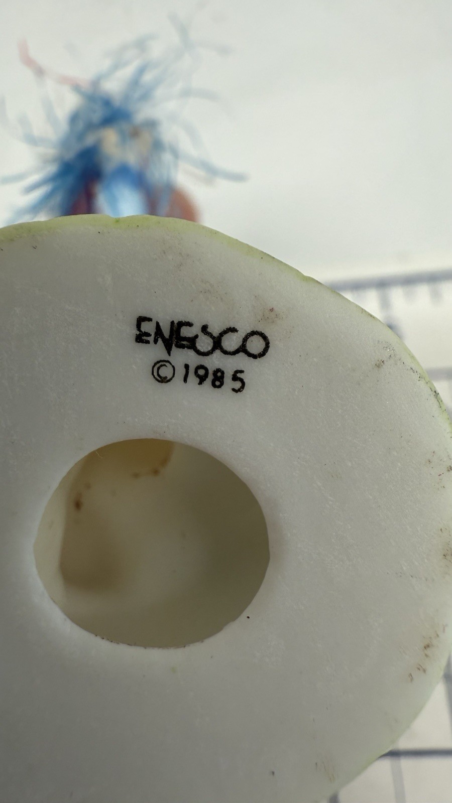 The 1985 Enesco Country Cousins Cheerleader Sarah with Pom Poms is a charming and nostalgic decorative collectible. This figurine features Sarah, a cute country cousin, dressed in a cheerleader outfit with pom poms, adding a playful touch to any collection or display. Enesco's attention to detail and quality craftsmanship make this piece a cherished item for collectors of decorative figurines.