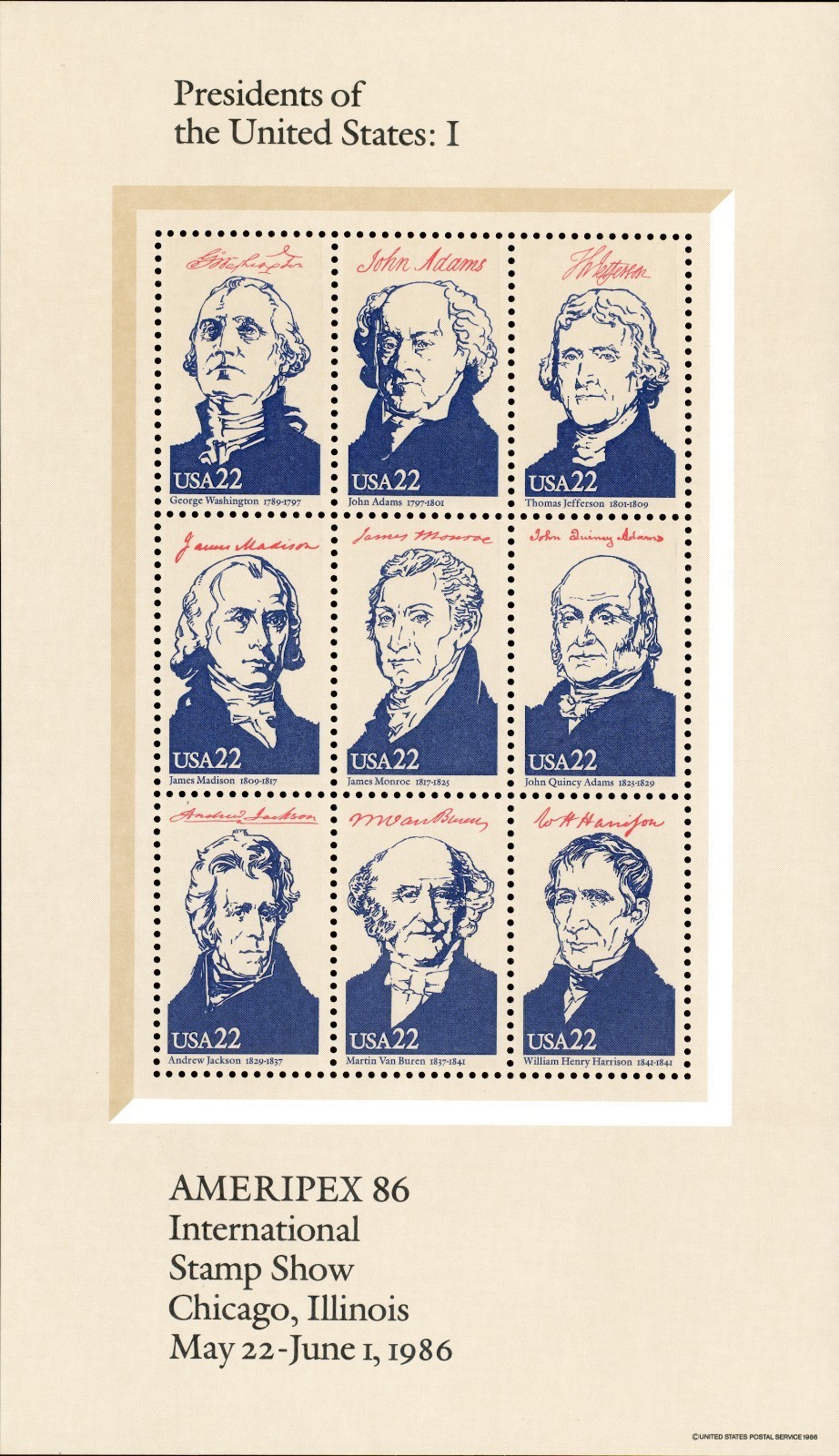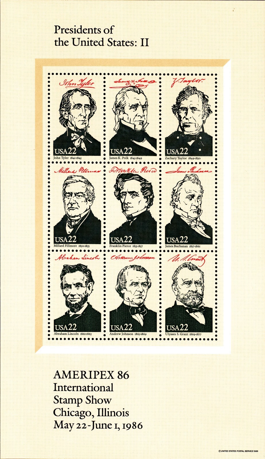 1986 Ameripex Souvenir Sheet Set Souvenir Set of 4 Sheets #2216-2219 Mint VF NH