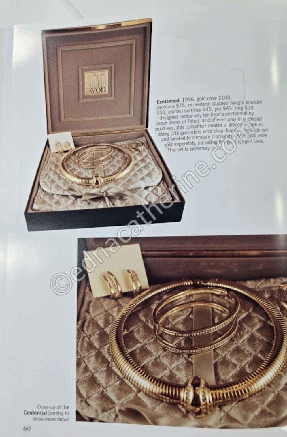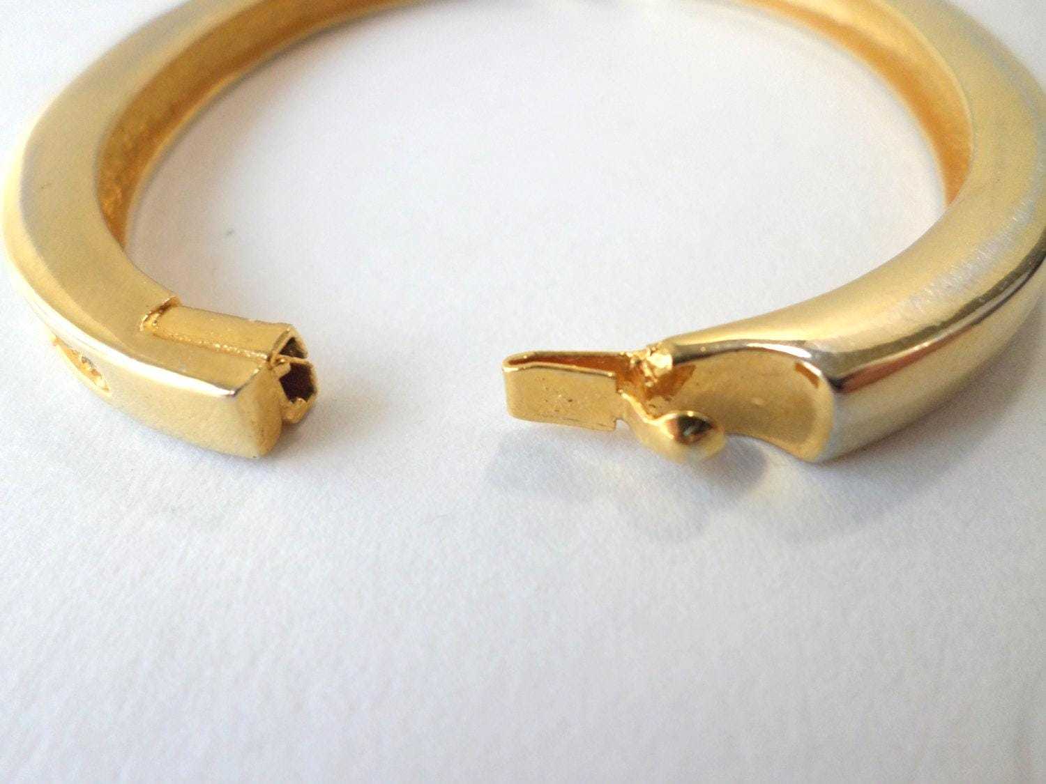 ?Style/Features: Relive 1986 with Avon's Centennial hinged bangle. Sarah Jones of Trifari designed this special release. The hinged bangle was part of a set, gold collar, ring, earrings, brooch, with each piece sold separately. This is only for the gold hinged bangle. Push snap clasp in perfect working order.