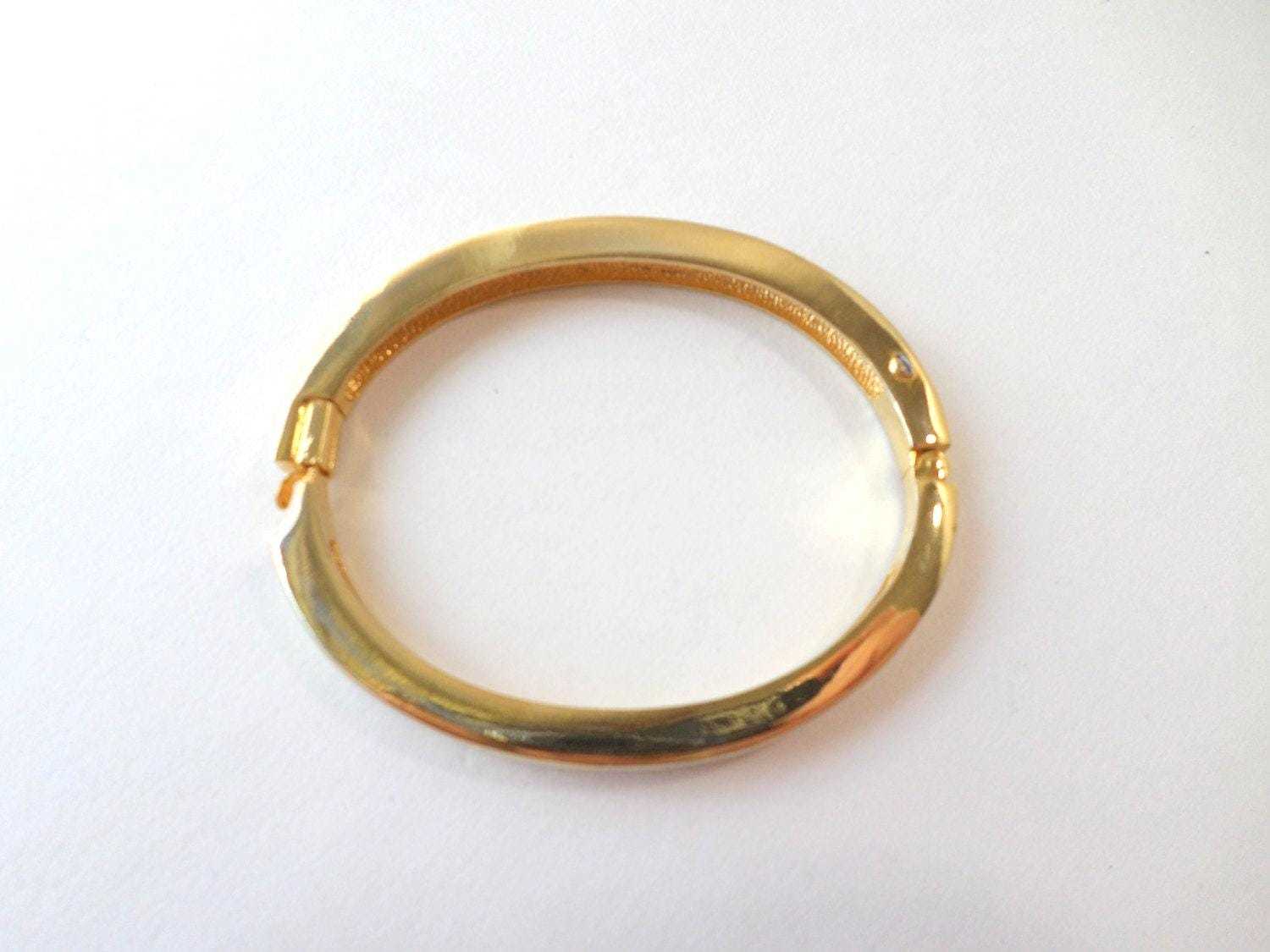 - 1986 Avon Centennial Bangle, 18k Gold Plated Austrian Crystal Hinged Bangle, Tri