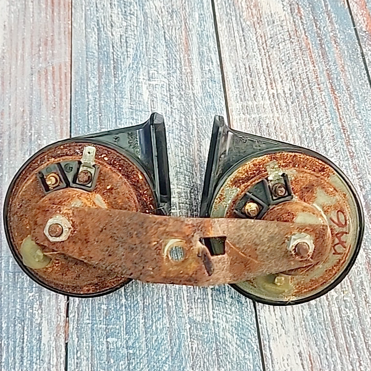 - 1987-1993 Ford Foxbody Mustang LX GT OEM Used Horns and Mounting Bracket Factory