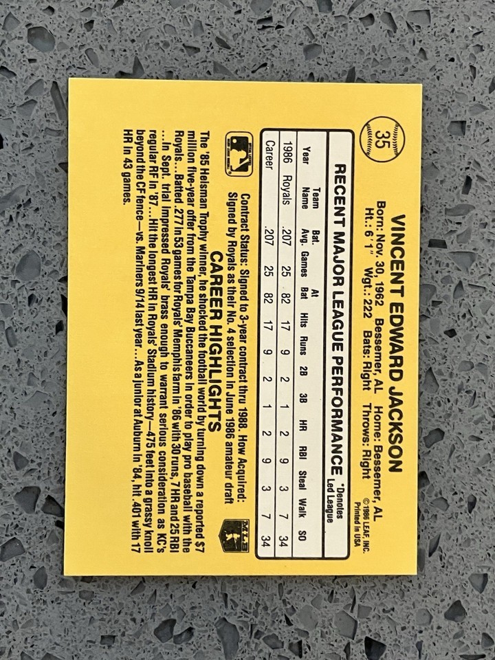 1987 Donruss Bo Jackson Rated Rookie #35 RC Royals NM-MT