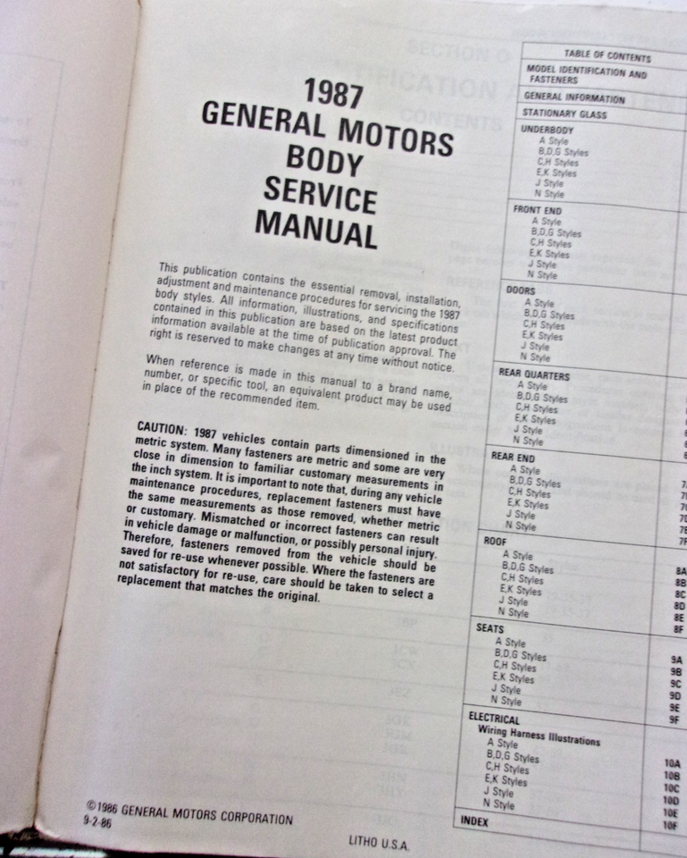 - 1987 General Motors Body Service Manual for Buick, Oldsmobile,Cadillac