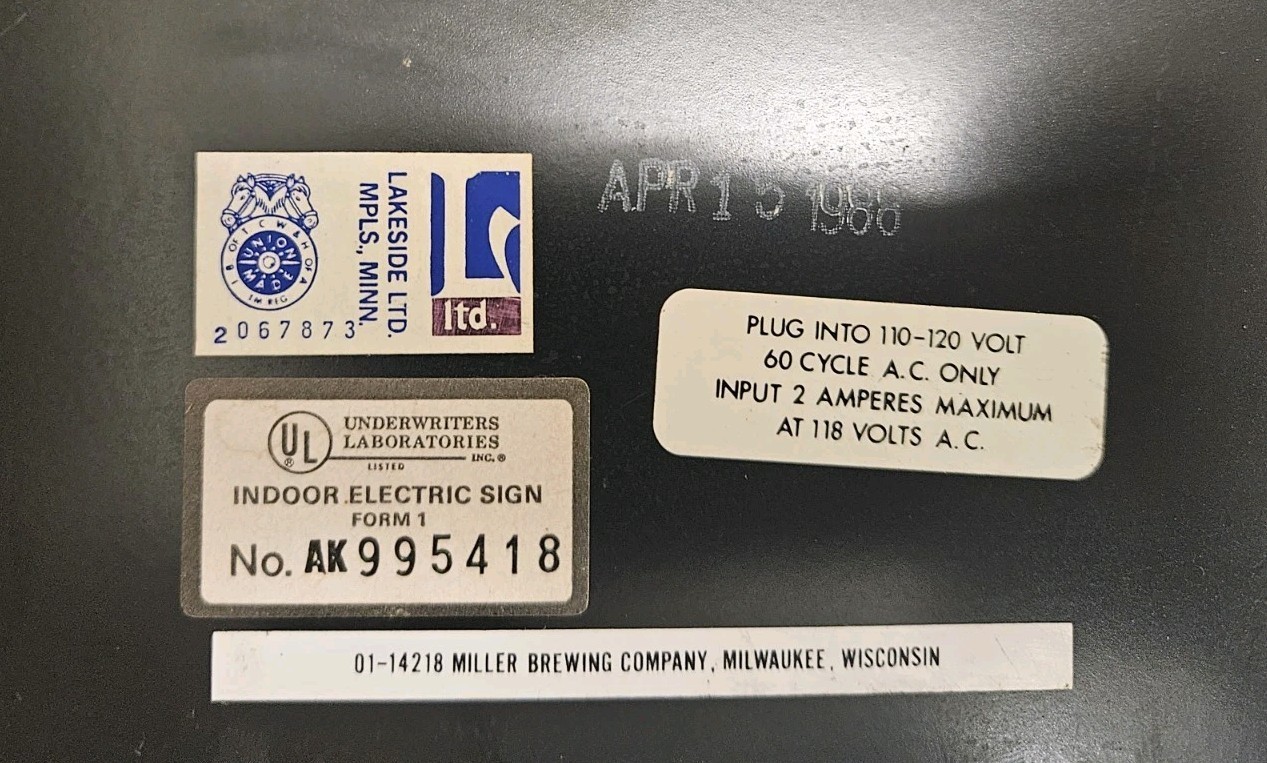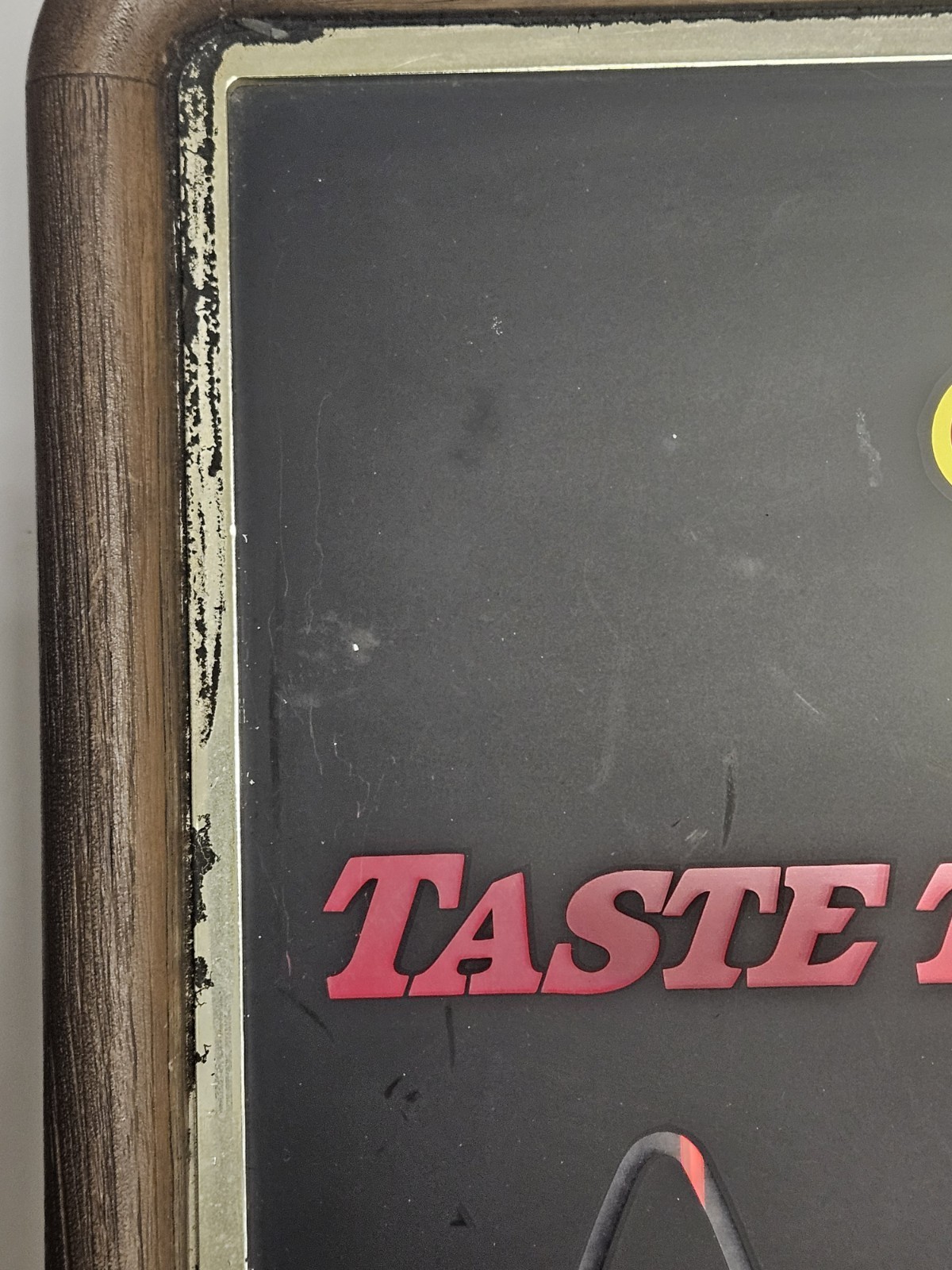 This is a rarer version of this sign and its in excellent condition! It has a functioning on/off switch. There are no cracks, chips, or scratches. The only small issue is there is some gold that has rubbed of the trim (see pics), which is very common on these signs. It measures 16.25" x 16.25" x 3.5" deep. Check out the video. Be sure to check out my pictures for complete description. Please contact me with questions, and be sure to check out my other items as I will combine shipments to save you money on shipping. Thank you for looking.