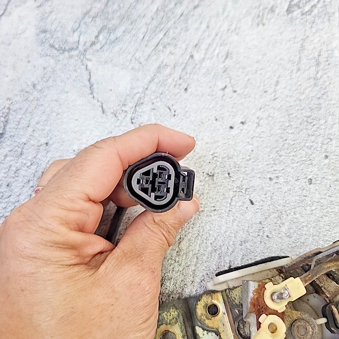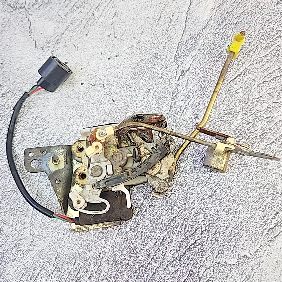 The 1990-1994 1st Gen Eclipse Laser Talon DSM LH Driver Door Latch Assembly OEM Used is a vintage part for Mitsubishi vehicles. This metal door lock assembly includes a central locking system and is designed for easy installation without the need for drilling. Manufactured in Japan, this multicolor latch is a genuine OEM part with the manufacturer part number MR199133. Ideal for left front placement, this durable lock is a reliable replacement for your vehicle's exterior locking system.