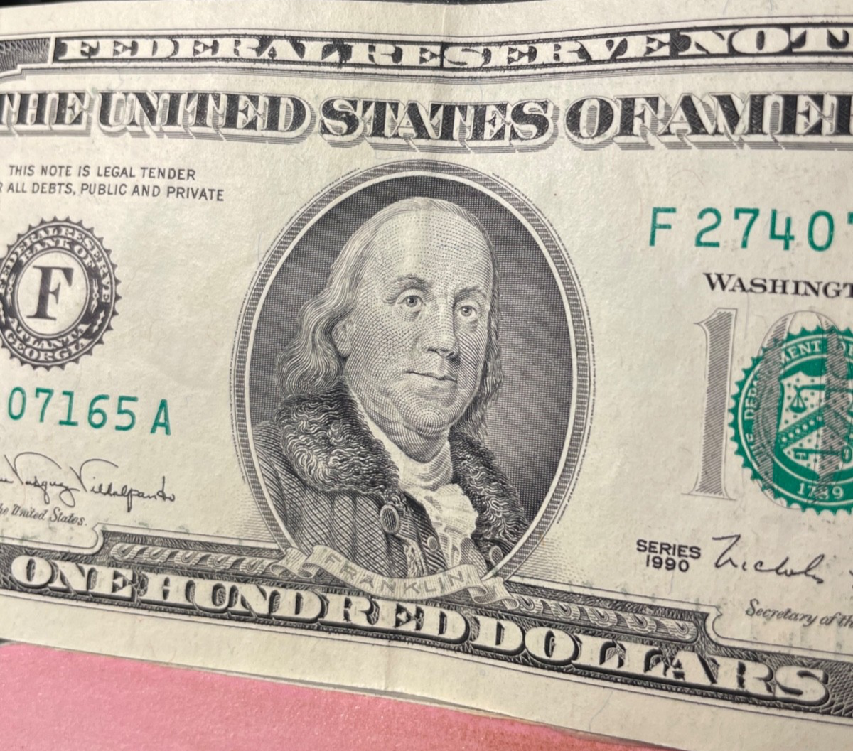 1990 Bill $100 Atlanta F27407165A ~ Small Face