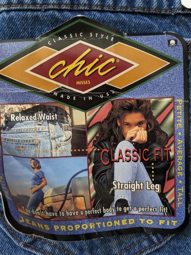 1990 CHIC 14 AVG Clásico Misses Algodón Mamá Vaqueros Azules USA 29 x 30 Nuevo