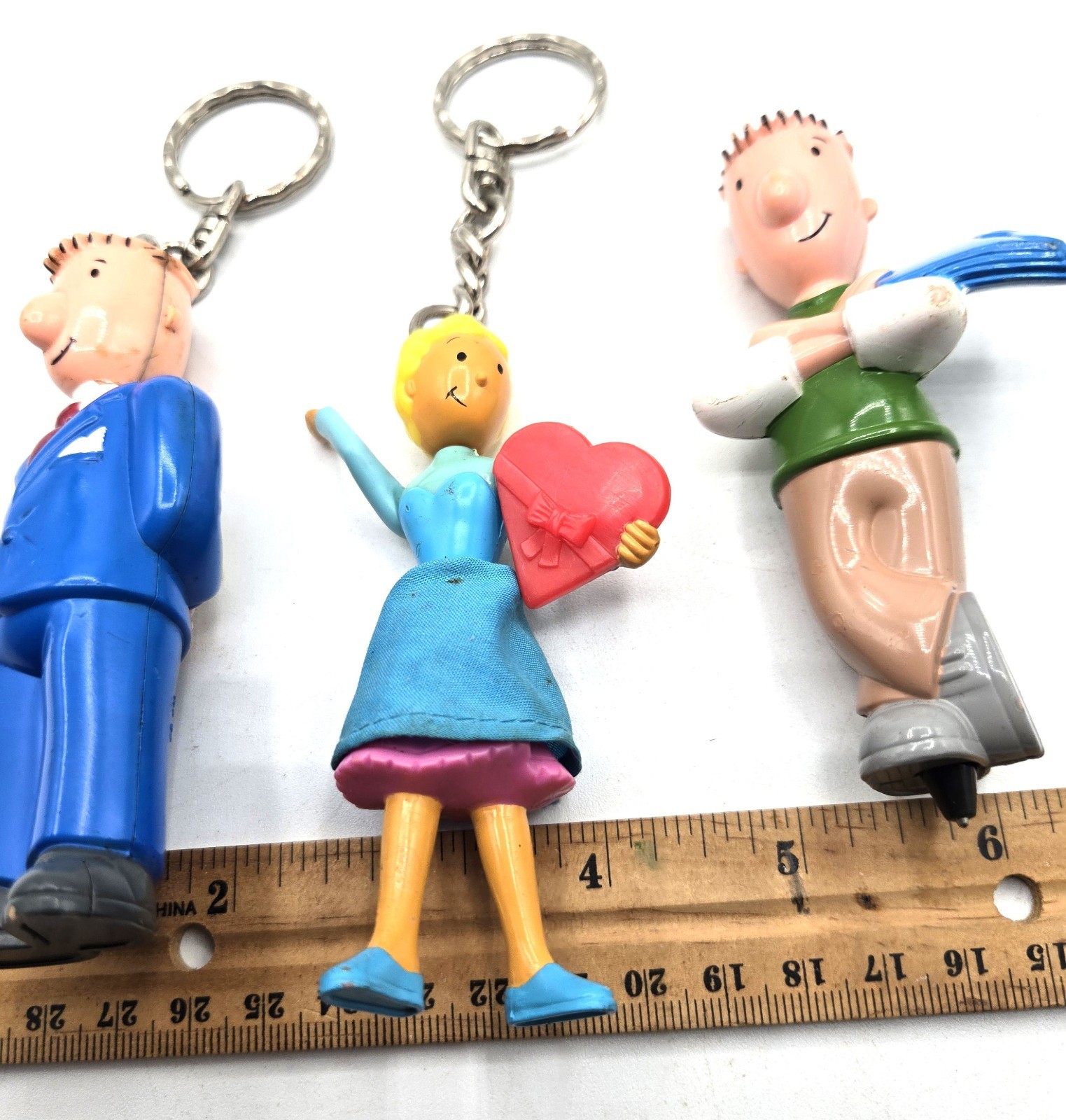 ? This product is a set of vintage 1990's Doug's First Movie and Pattie Key Chains Pen McDonald's plastic collectibles.