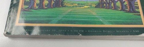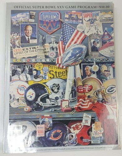 The product is a pair of vintage official game programs from the 1991 and 1993 Super Bowls - XXVIII and XXV, featuring the National Football League (NFL). These original programs from the United States showcase the games between the Falcons and Broncos, making them a valuable piece of sports memorabilia for fans of football and the NFL.