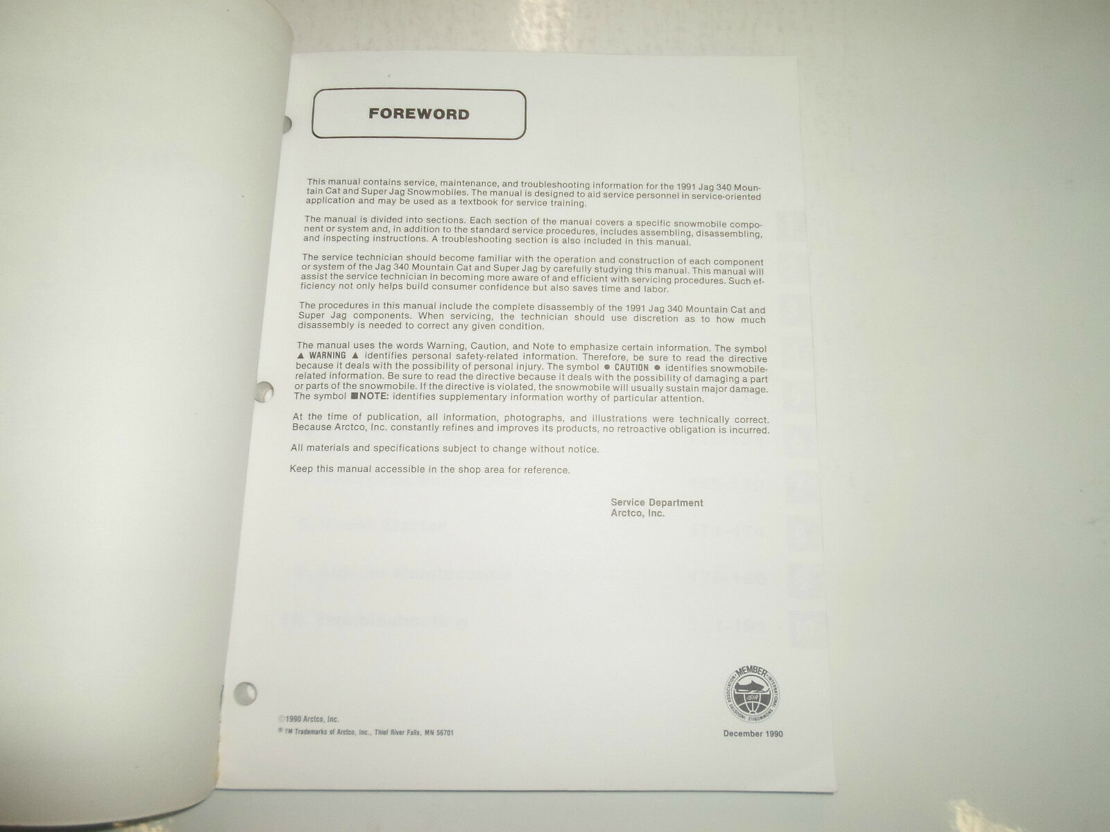 1991 Arctic Cat Jag 340 Mountain cat Super Jag Service Repair Manual INK STAMP