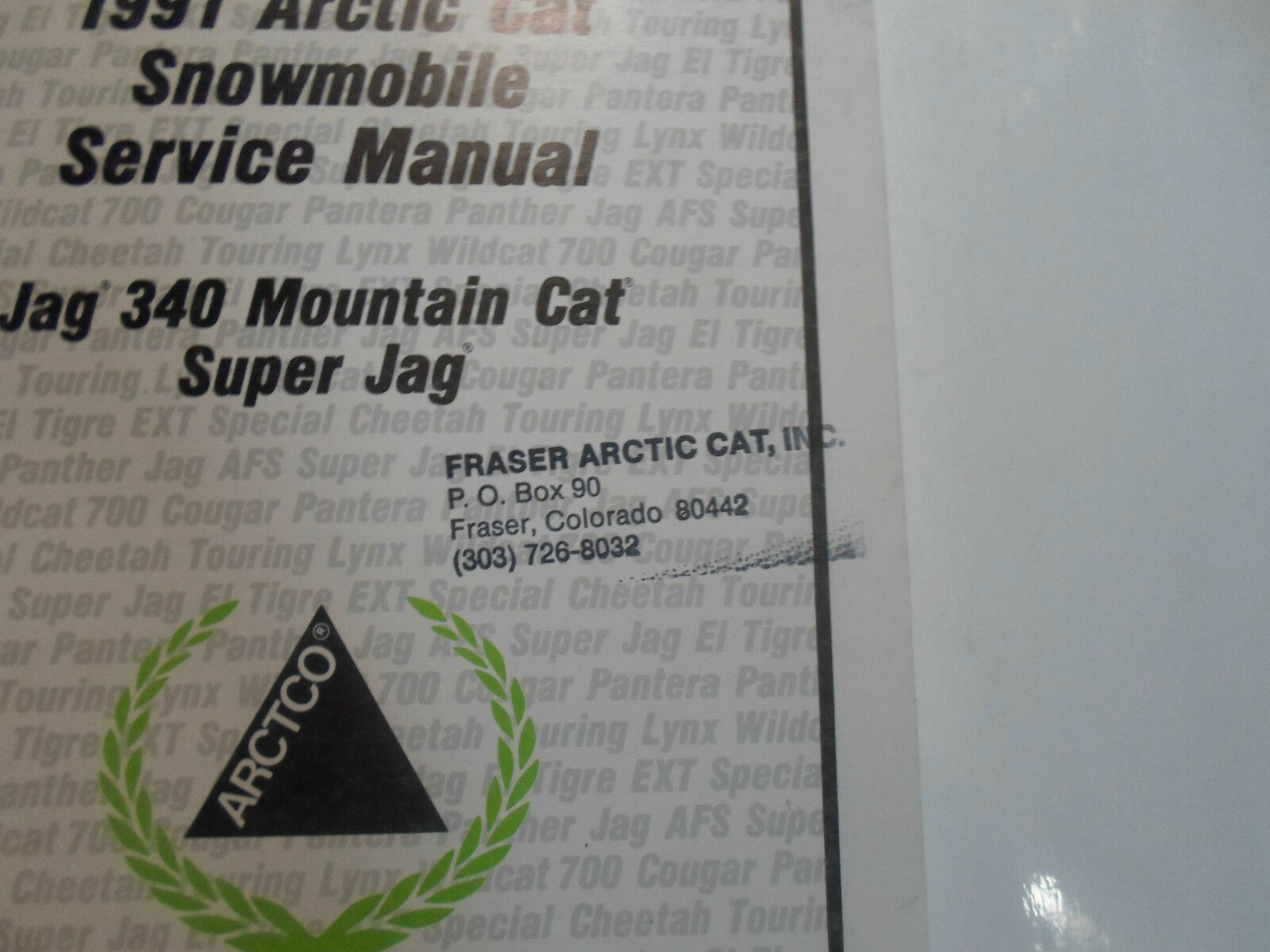 Primary image for 1991 Arctic Cat Jag 340 Mountain cat Super Jag Service Repair Manual INK STAMP