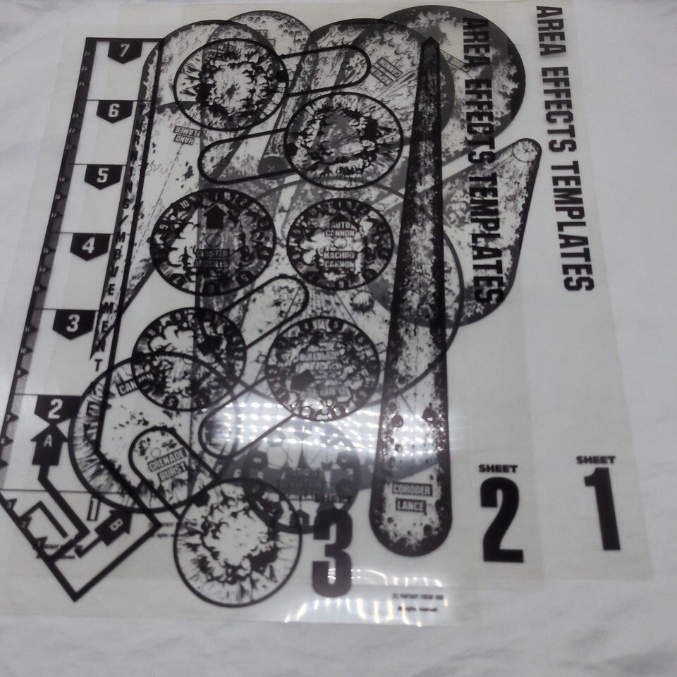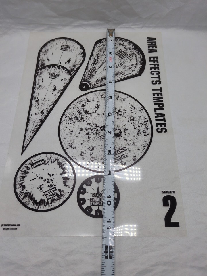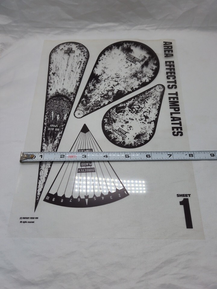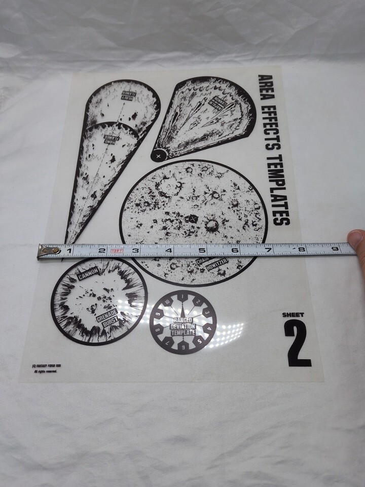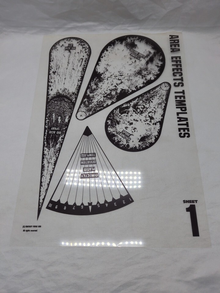 - 1991 Fantasy Forge Miniatures Area Effect Templates Sheets 1-3
