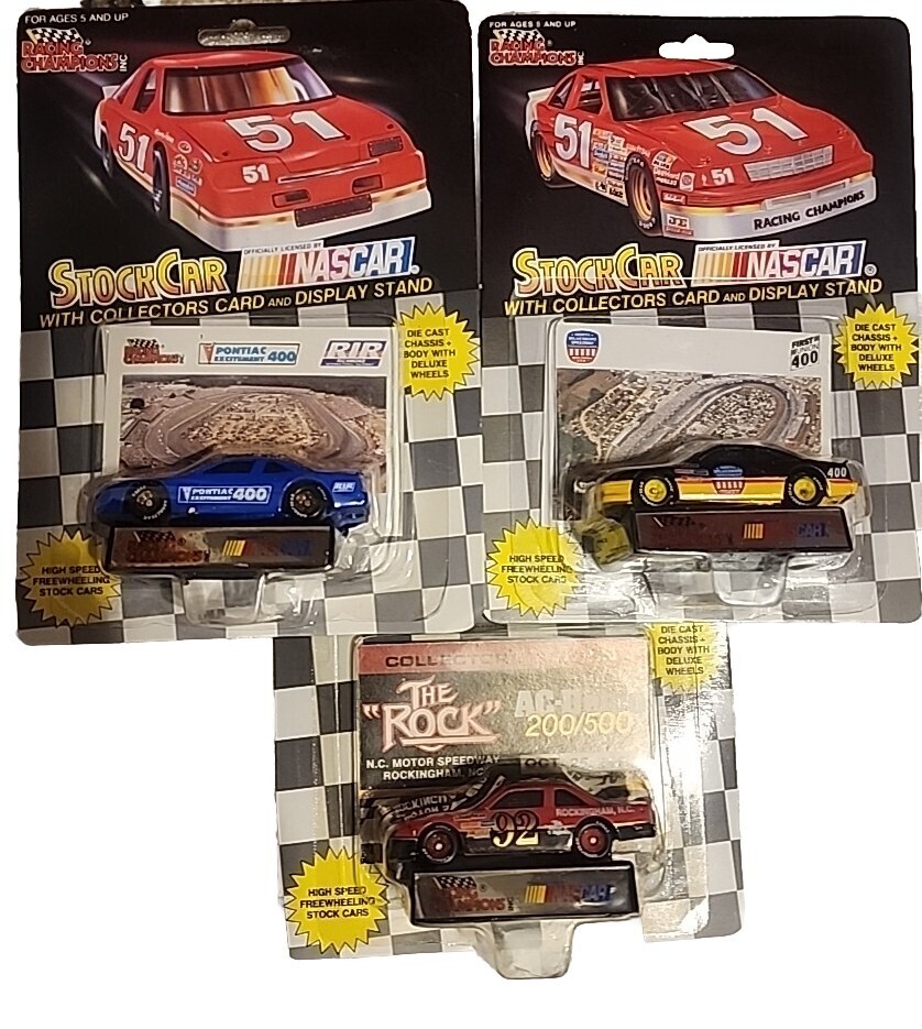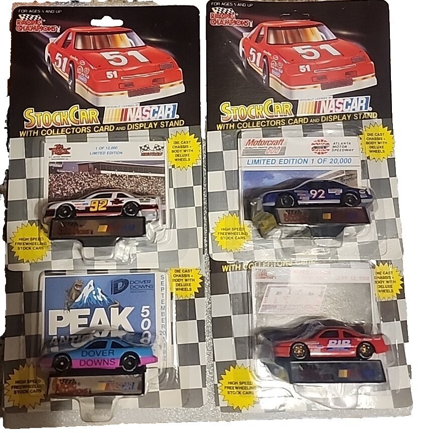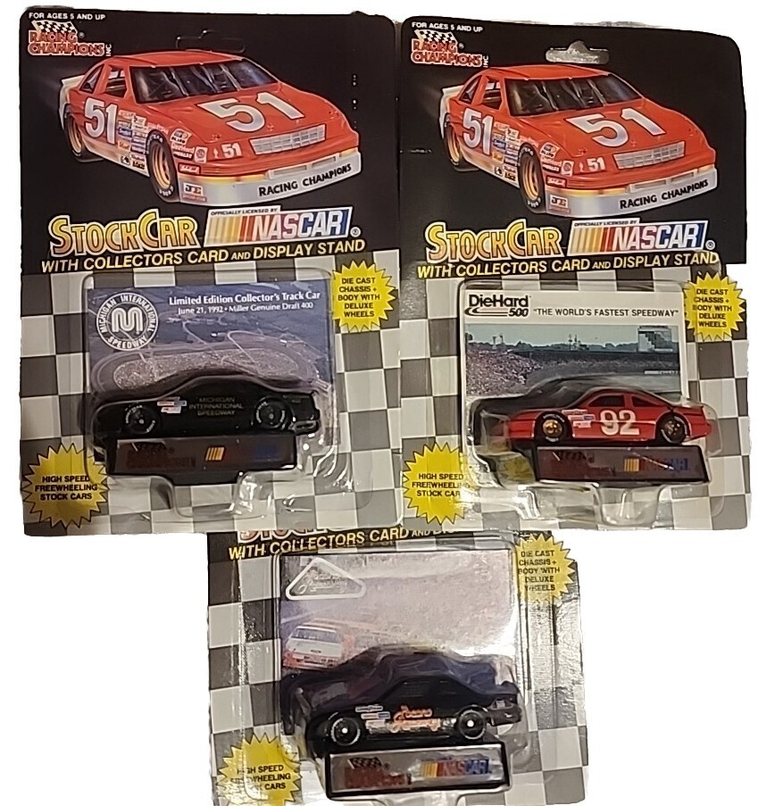 Rare Lot of 26 Nascar Tracks Diecast cars from 1992. Some are rare such as 1 of 10,000 some are 1 of 15,000 and others are as 1 of 20,000. Most of the cards are in very good condition for the age. One of the Rockingham card's protective blister is cracked.