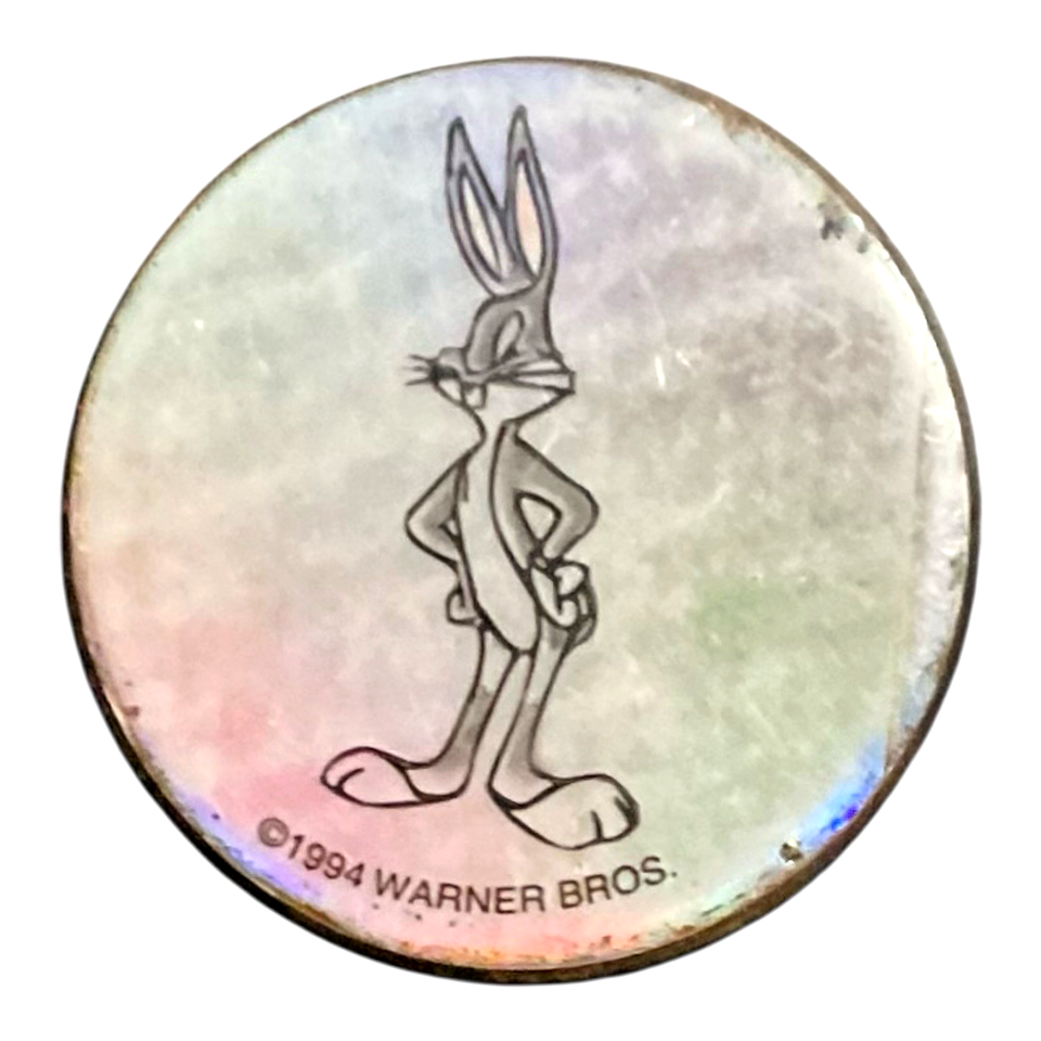 - 1994 Bugs Bunny Metal POG Slammer – 1.5" Holographic Looney Tunes WPF Vintage