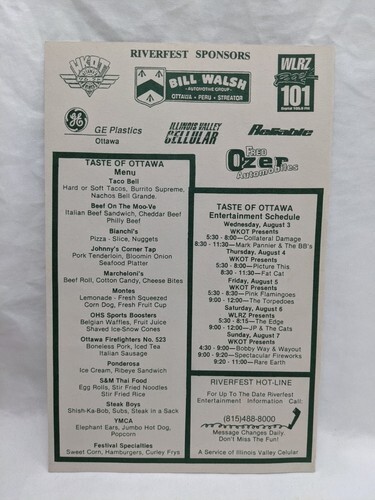 1994 Ottawa Illinois Friendly City Riverfest Schedule Of Events
