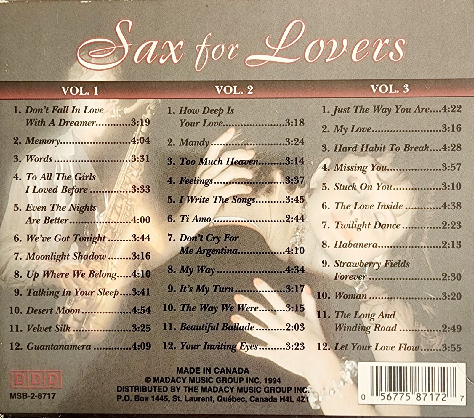 - 1994 Sax For Lovers 3 CD Box Set Madacy Music Smooth Jazz Instrumental ELEC