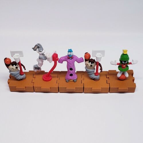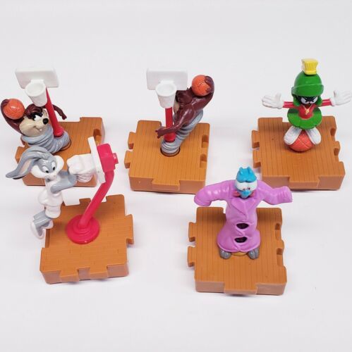 1996 Space Jam McDonald's Toys Bugs Bunny, Marvin Martian, Taz (x2), Nerdlucks. SHIPS WITH USPS FIRST CLASS MAIL - THESE VINTAGE SPACE JAM TOYS ARE ALL IN GOOD WORKING CONDITION AND FUNCTION AS THEY WERE ORIGINALLY INTENDED TO. THERE IS A SMALL WHEEL ON THE BOTTOM OF EACH ONE AND WHEN YOU PUSH THE TOY ALONG THE CHARACTER ABOVE REACTS AND MOVES. THESE PIECES ARE ALL INTERLOCKING AND FIT TOGETHER LIKE A PUZZLE. SEE PICTURES FOR MORE DETAILS.
