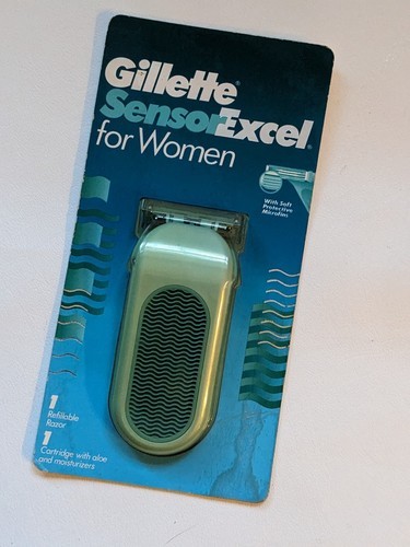 Up for sale is a new Vintage 1996 Gillette Sensor Excel Women Green Razor Handle 1 Cartridges.