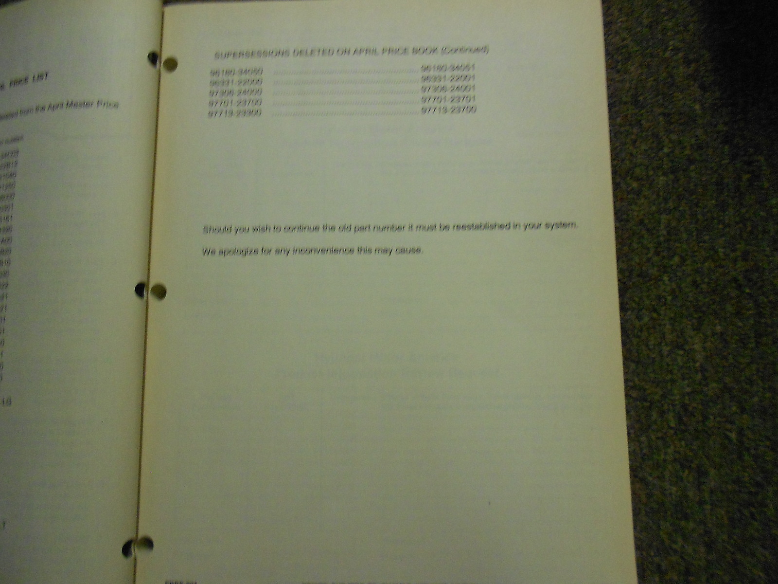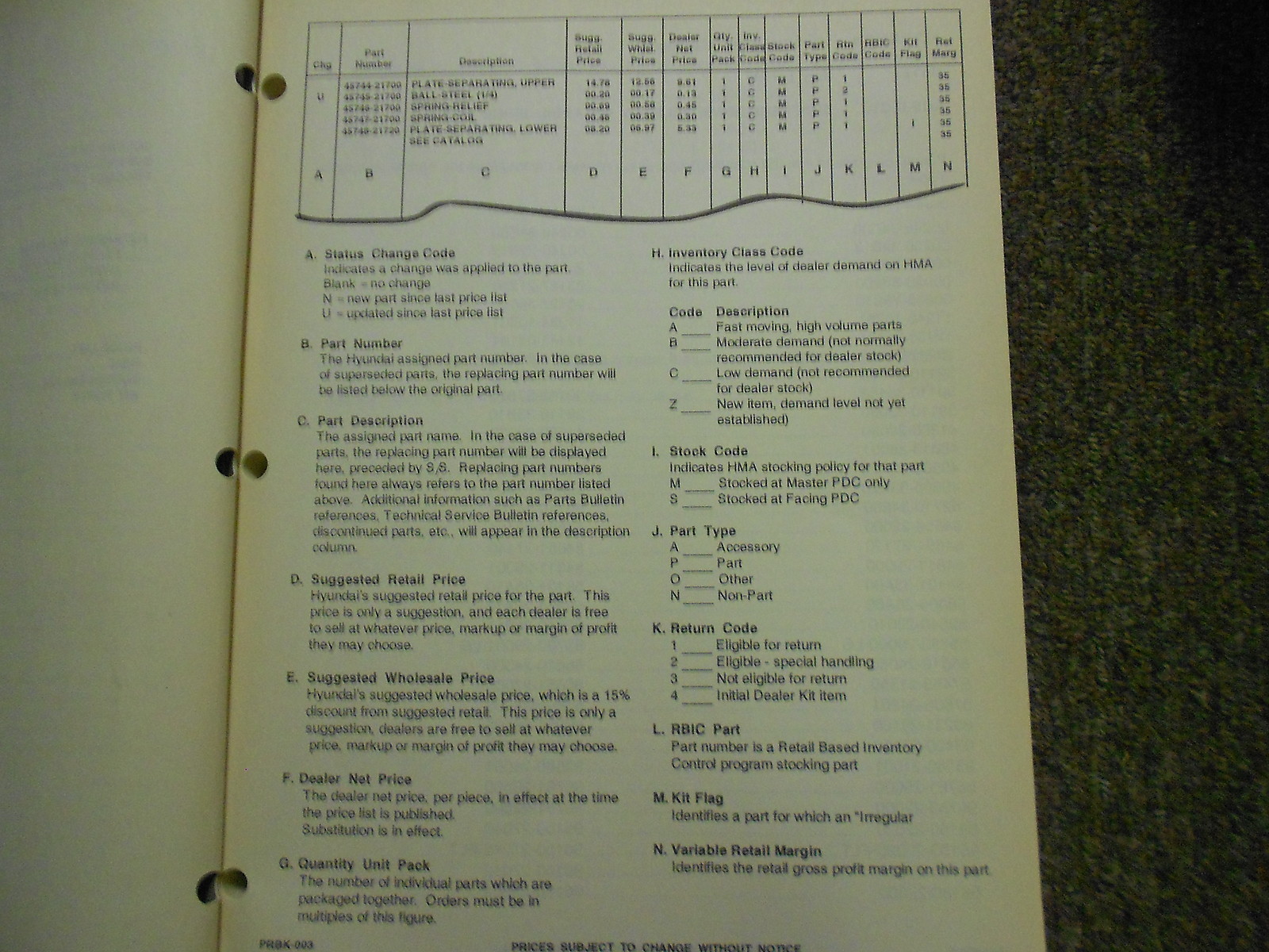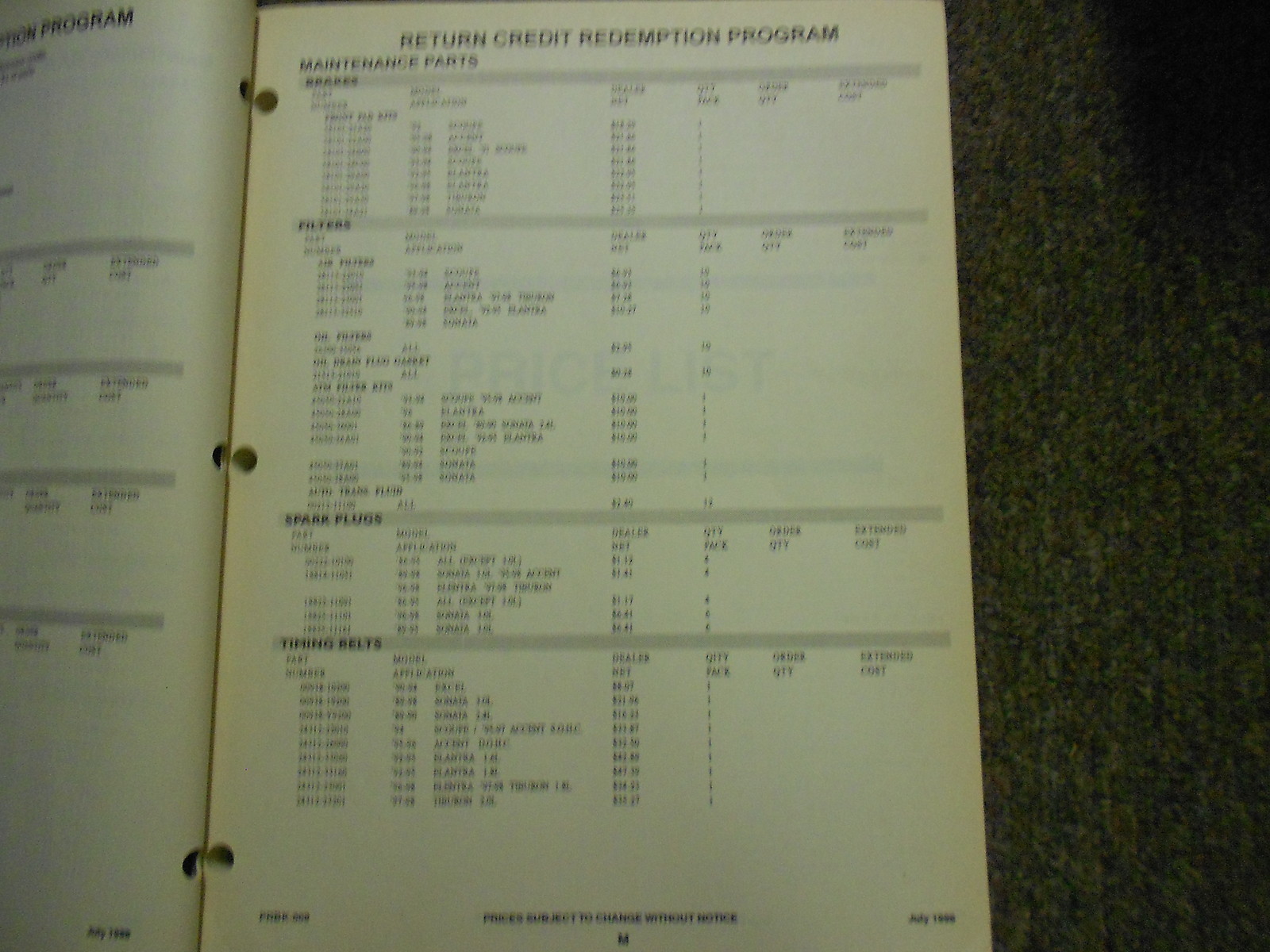 1998 HYUNDAI PARTS PRICE LIST MANUAL