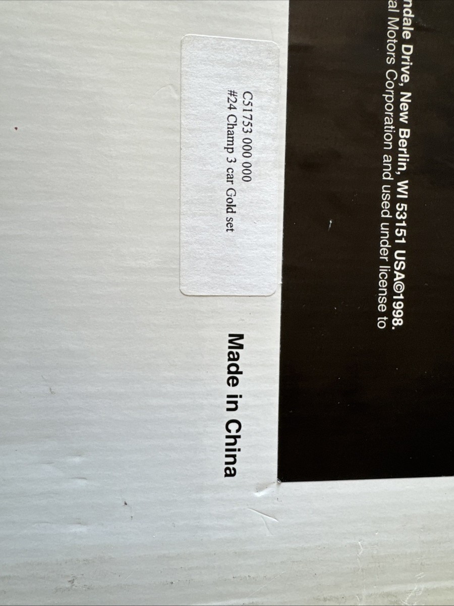 The 1998 Jeff Gordon Championship 3 Car Set Limited Edition #24 by Brookfield Collectors is a highly sought-after collectible for fans of NASCAR and Jeff Gordon. This set includes three diecast Chevrolet Monte Carlo cars in gold and red colors, showcasing Jeff Gordon's iconic #24 car from the 1998 racing season. The cars are in a 1:24 scale and feature the Jeff Gordon Championship theme, making it a special addition to any adult collector's racing memorabilia collection. Made in China, these sport cars are a must-have for fans of the legendary driver and his racing