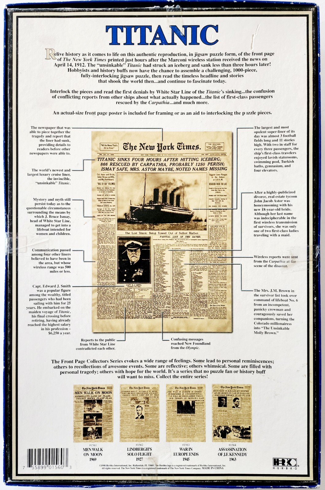 - 1998 Titanic Wreck Jigsaw Puzzle New York Times Front Page Herbko 1000 Pcs GstRm